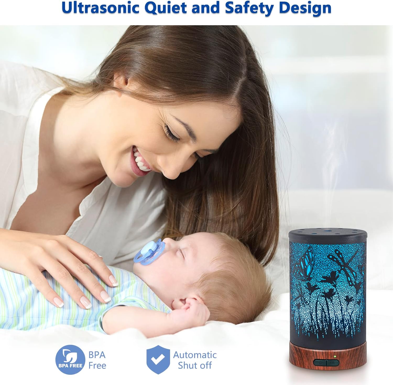 SUPER QUIET- Adopted ultrasonic technology, this diffuser is extremely quiet when working. Ultrasonic diffusers generate the vapor without any heat.