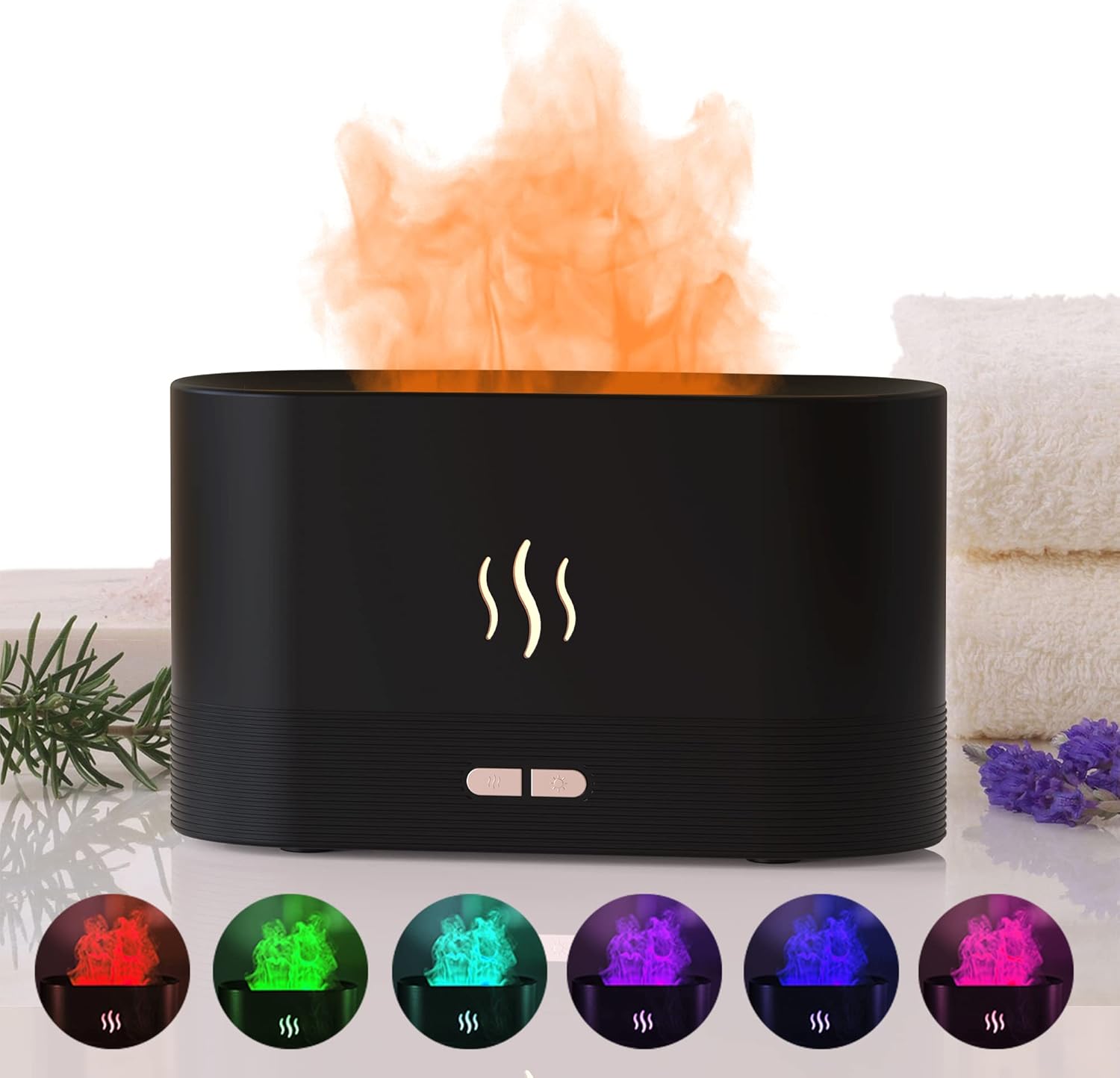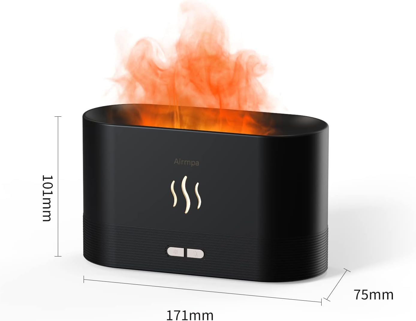Essential Oil Diffuser,Imitation Flame Aromatherapy Diffuser, Cool Mist Diffusers With Colorful Flame Effect, Airmpa 180ml Aroma Diffuser,Aroma Diffusers for Bedroom, Office, Bedroom, Yoga (Black)