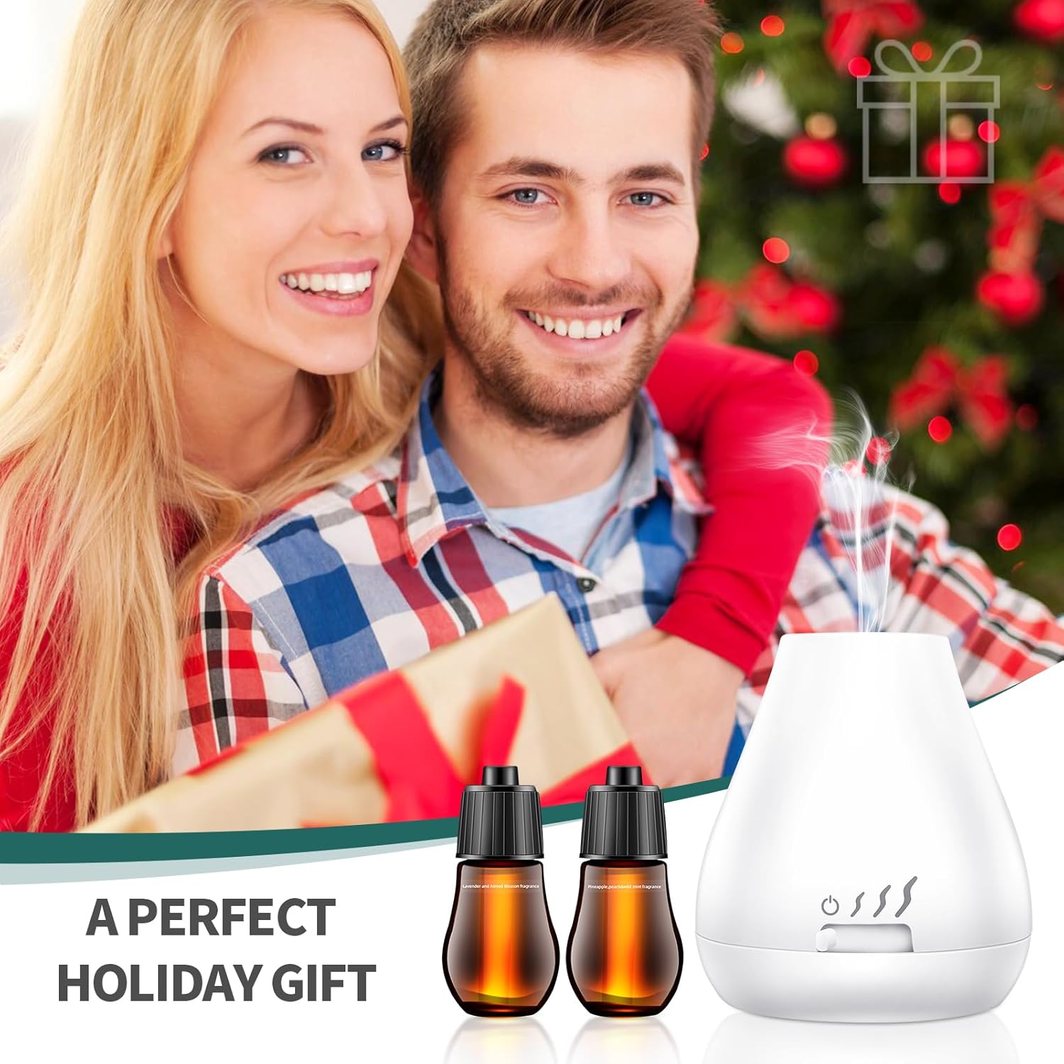 The package comes with 2 20ml bottles of blended essential oils, which are lavender and almod blossoms and pineapple, peach & wild mint scent.