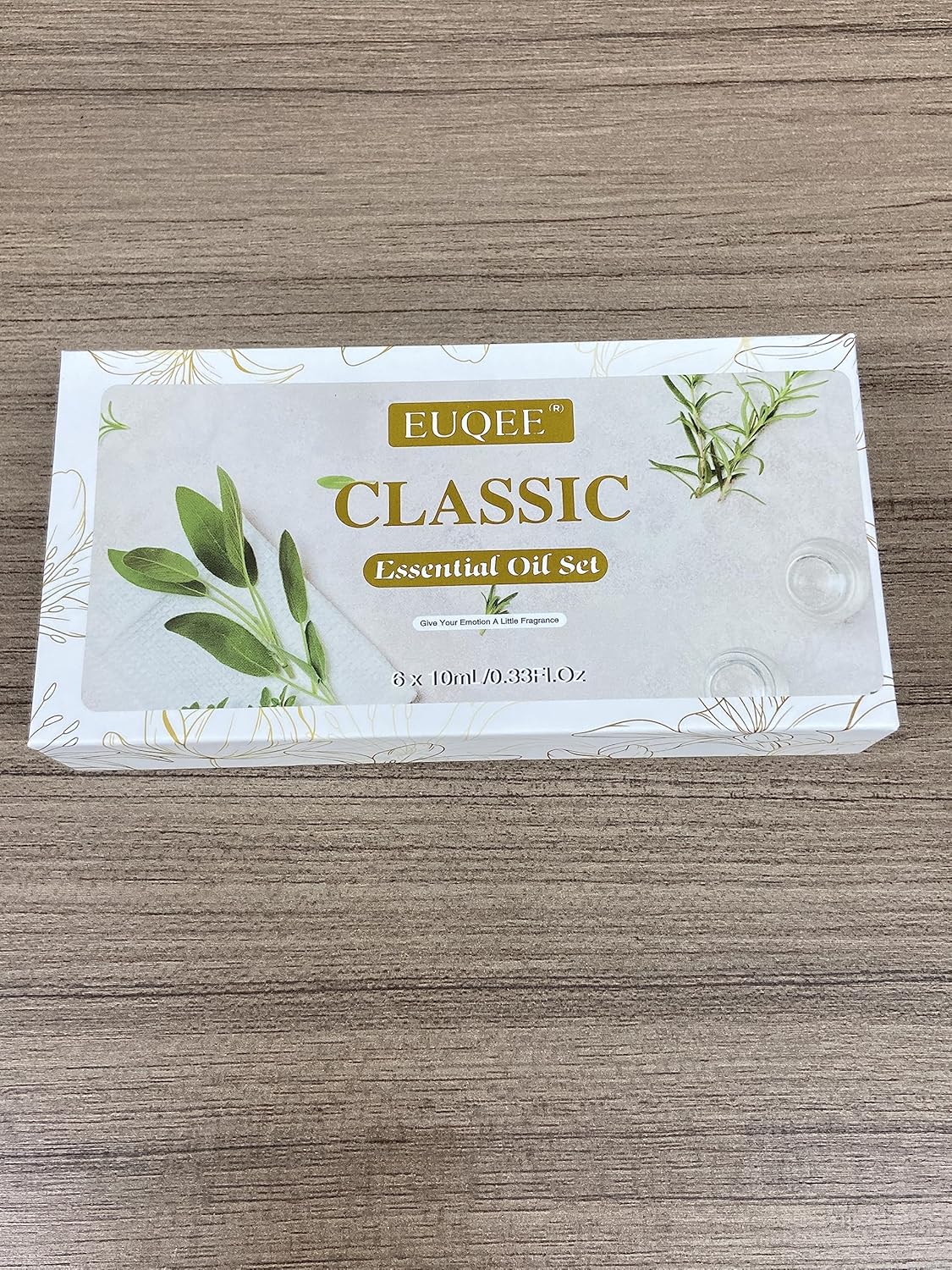 EUQEE Essential Oils Set, Therapeutic Grade Pure Oil for Diffuser Home, Classic Aromatherapy – Lavender, Eucalyptus, Peppermint, Tea Tree, Sweet Orange, Lemongrass 6 x 10ml, White