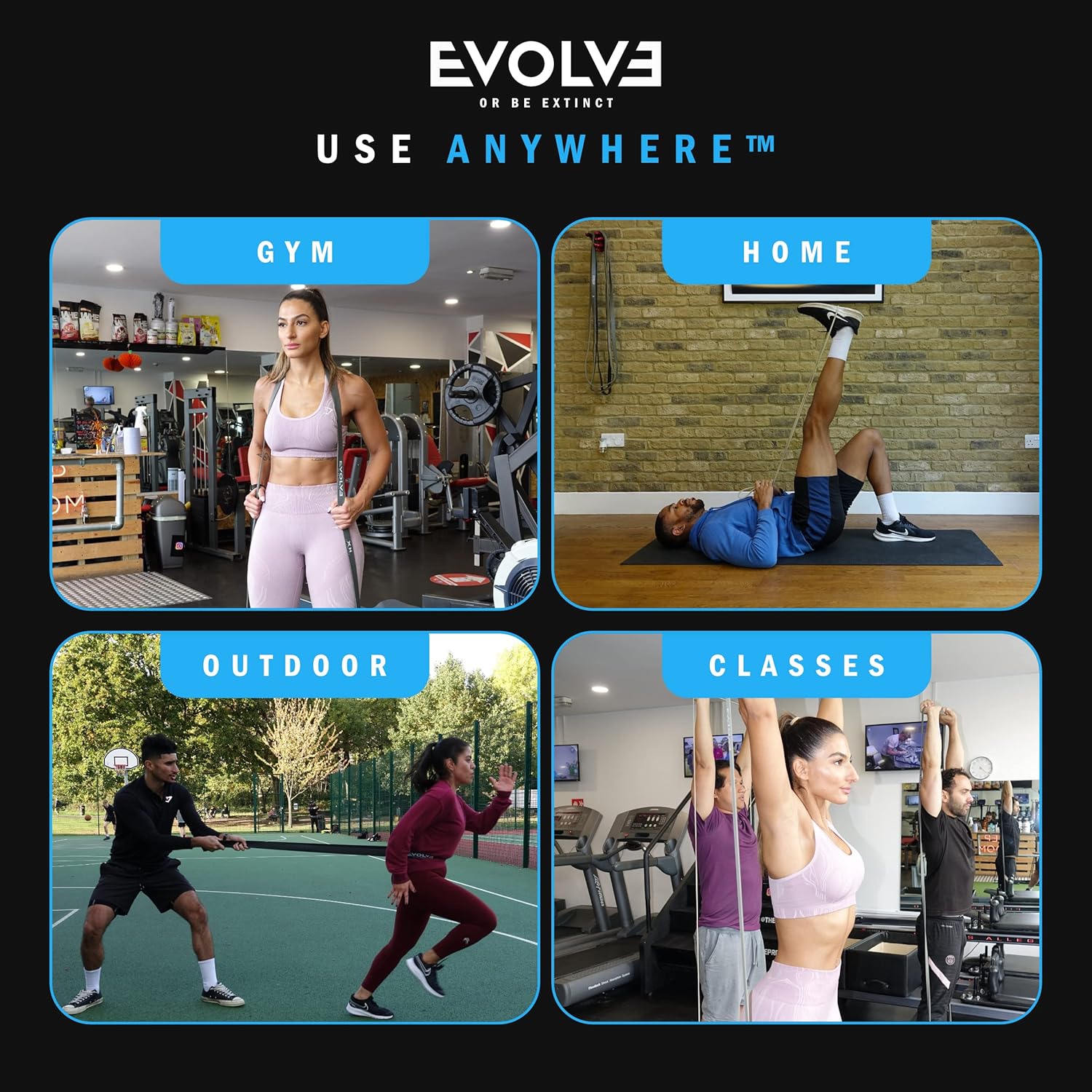 Take your training and fitness routine ANYWHERE with our EVOLVE OR BE EXTINCT resistance bands. Premium quality, non-pungent and eco-friendly, our 100% natural latex resistance band set is designed for comfort & durability. With five different levels of resistance, each band can be used to achieve a wide range of intensities whilst training. All customers get FREE access to our online exercise brochures as well as video tutorials and training tips, visit our website at EvolveOrBeExtinct.com for more details. Our bands are suitable for an extensive range of exercises whether your focus is flexibility, mobility, strength, assisted body weight, upper body, lower body, core, or speed training. Also suitable for physical therapy to rebuild torn ligaments or muscles.