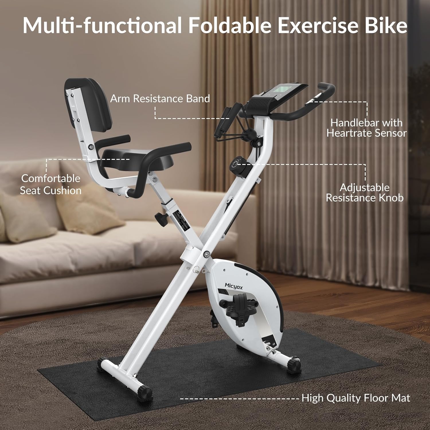 Exercise Bike, Micyox Magnetic Foldable Indoor Cycling Bike with LCD Display and Heart Rate Sensor Home Workout Bike with Resistance Bands Space-saving Fitness Exercise Equipment