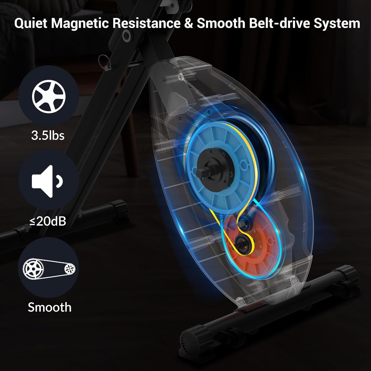 【Smooth and Quiet Ride】With the magnetic resistance flywheel, there is no contact between parts, creating a frictionless, silent resistance force; The bike is whisper-quiet and provides a smooth workout, allowing you to watch TV or read a book without any distractions, and work out anytime without disturbing others.