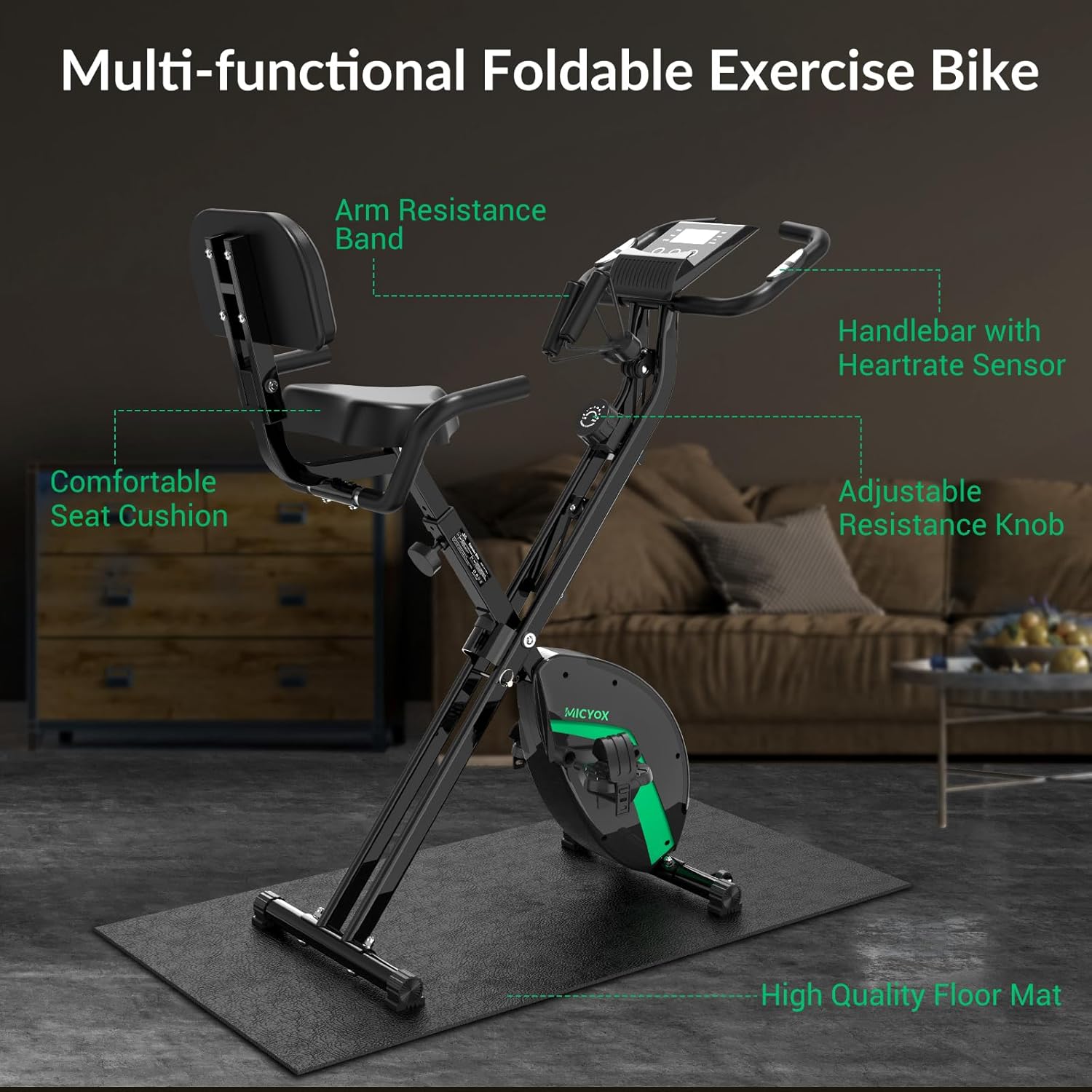 Exercise Bike, Micyox Magnetic Foldable Indoor Cycling Bike with LCD Display and Heart Rate Sensor Home Workout Bike with Resistance Bands Space-saving Fitness Exercise Equipment