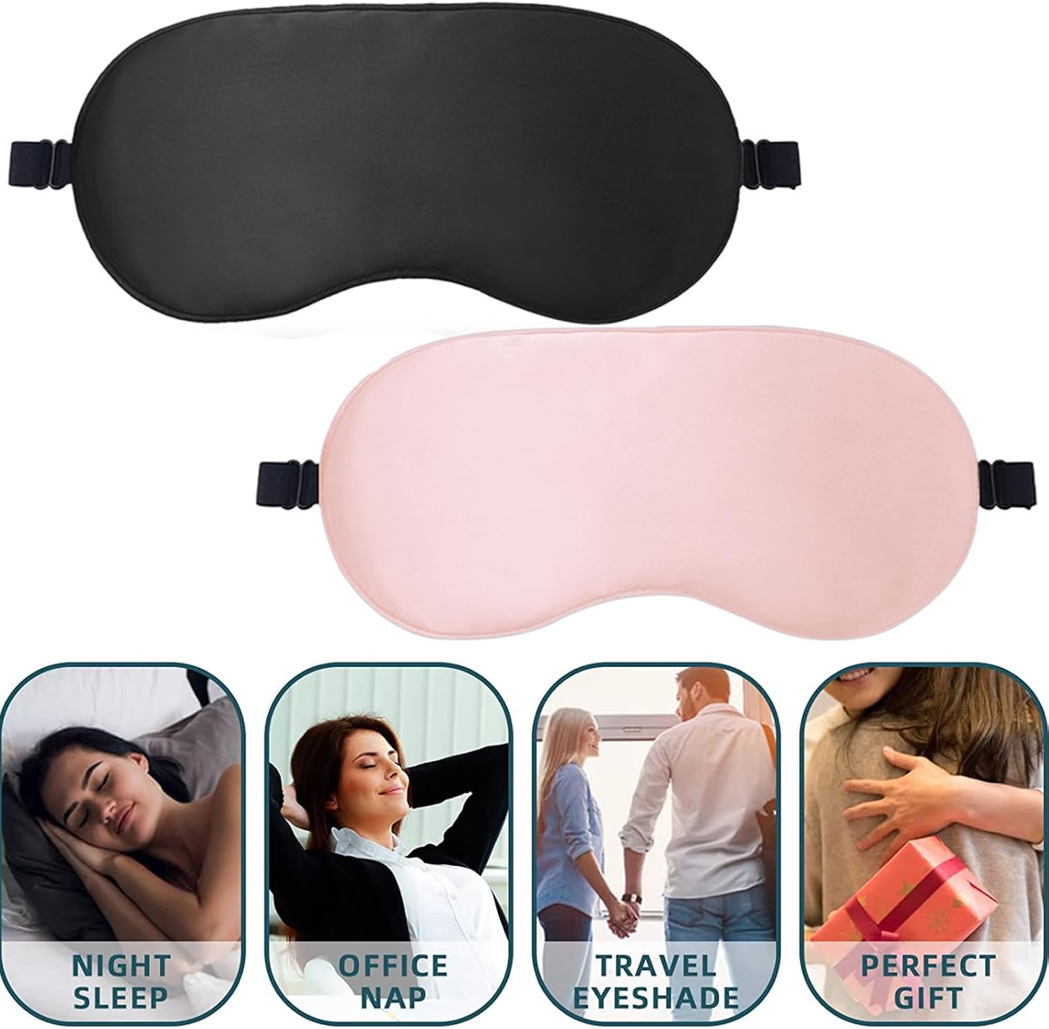 Eye Mask for Sleeping, 2 Pack Mulberry Silk Eye Mask with Adjustable Strap Sleeping Aid Blindfold for Nap Blocks Light Reduces Puffy Eyes Gifts for Christmas Super Soft Sleep Mask