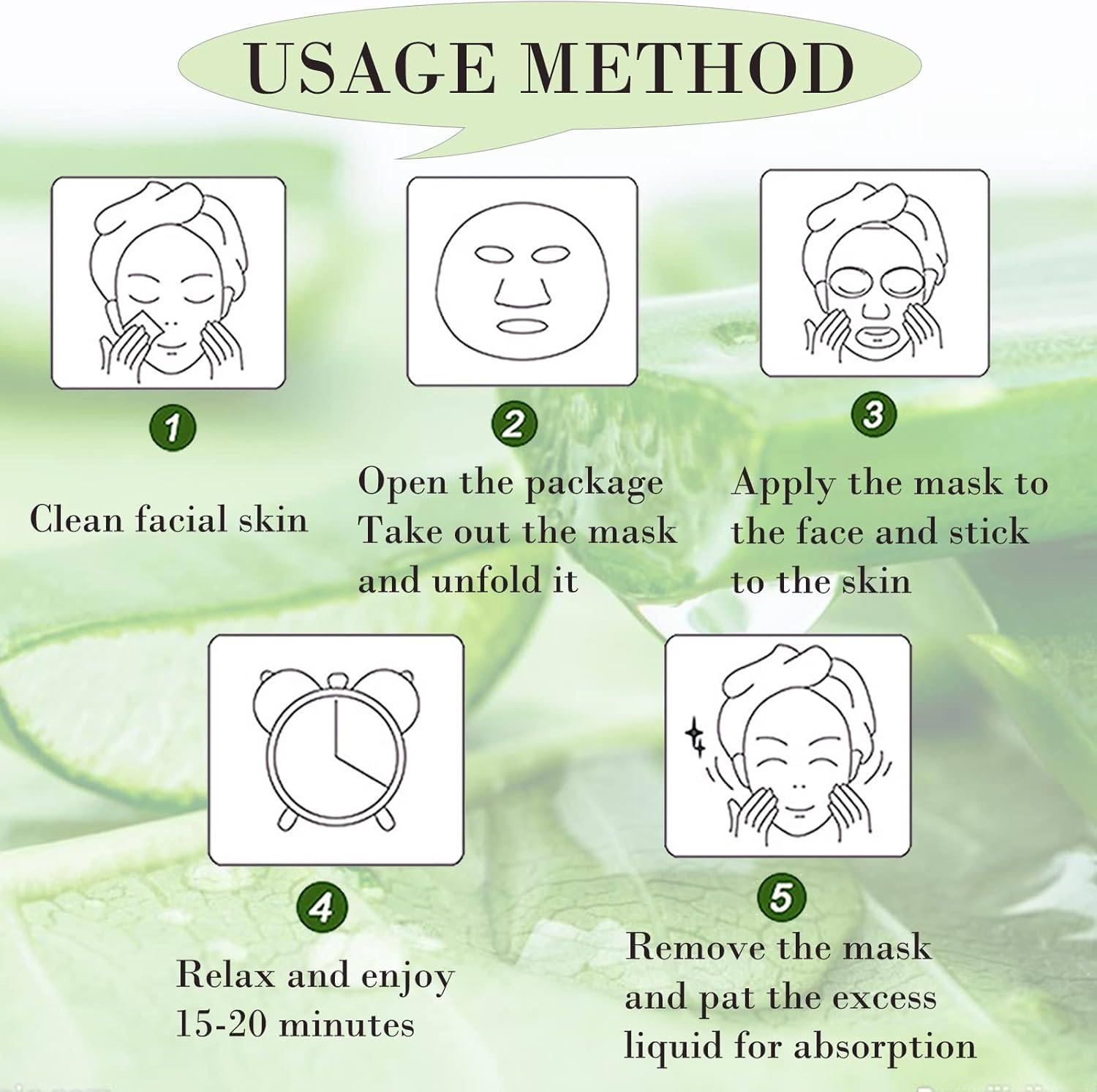 🌸Rich in aloe essence and hyaluronic acid aloe masks aim to nourish skin, relieve rough and tight feeling, improve skin color and make skin glow with youthful brilliance and help to restore the natural elasticity and vitality of the skin.