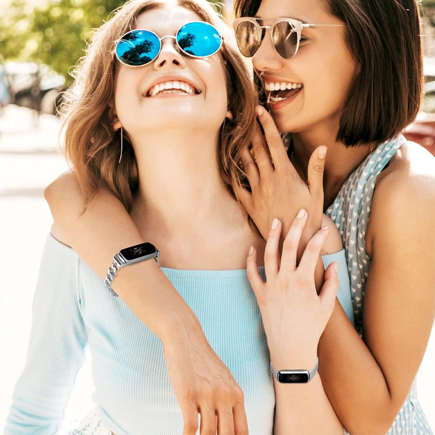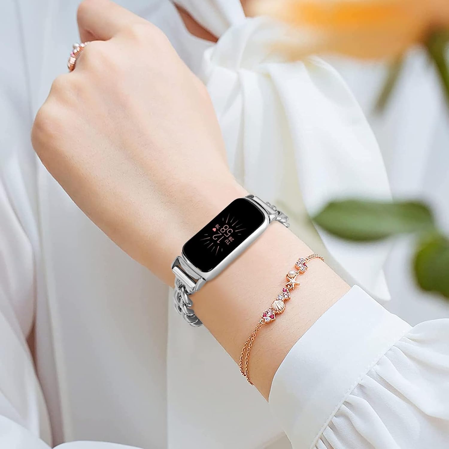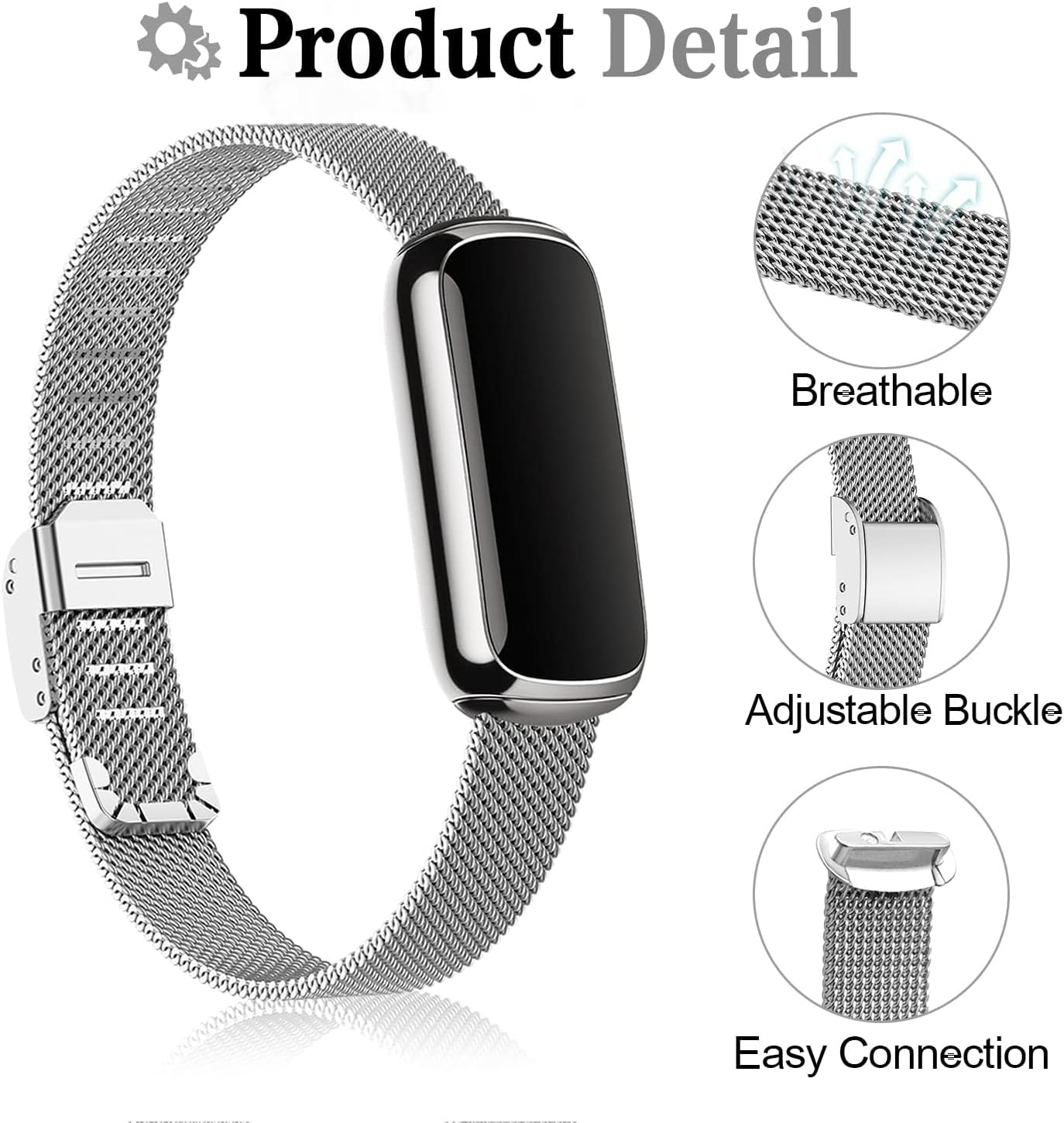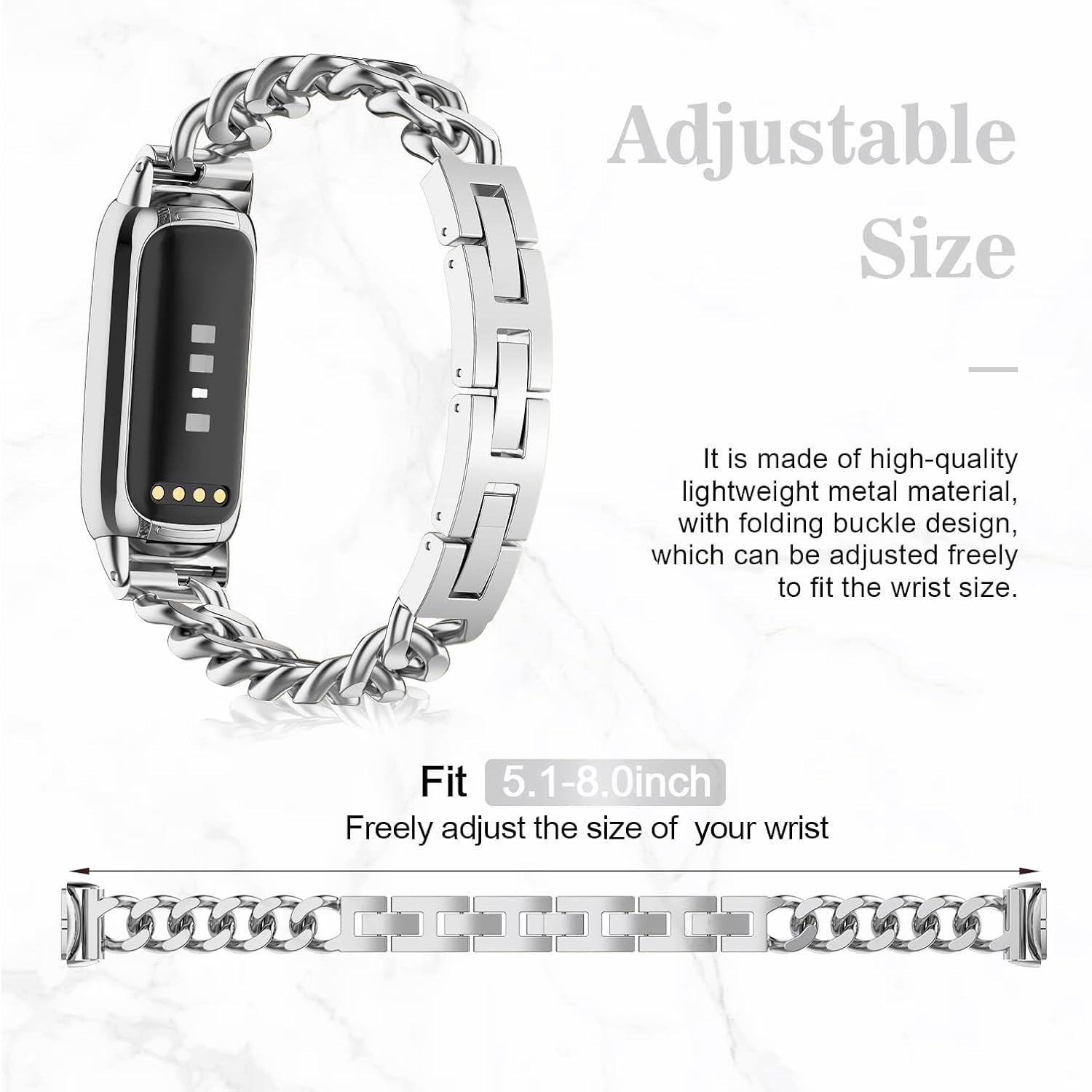 Material: Farluya Fitbit Luxe bands are made of high quality& stainless steel metal with folding buckles, breathable, durable,lightweight and comfortable to wear.