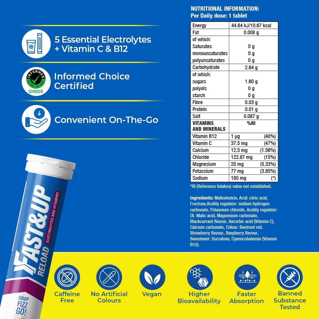 Fast&Up Reload – Mixed Berry – Instant Electrolytes & Hydration – 20 Effervescent Tablets