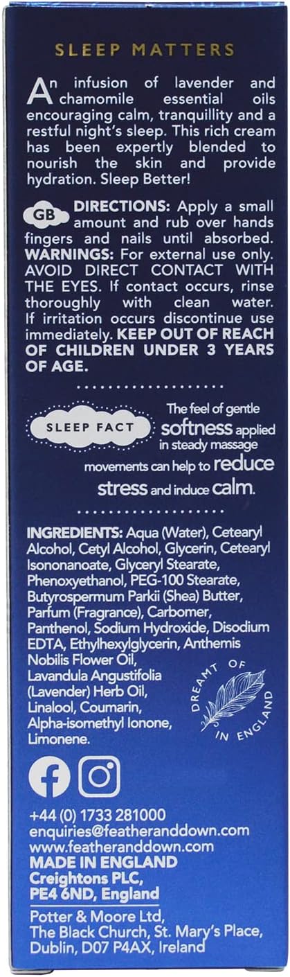 Feather & Down Sweet Dreams Nourishing Night Hand Cream (75ml) – With Calming Lavender & Chamomile Essential Oils. Cruelty Free. Vegan Friendly. Sleep Matters.