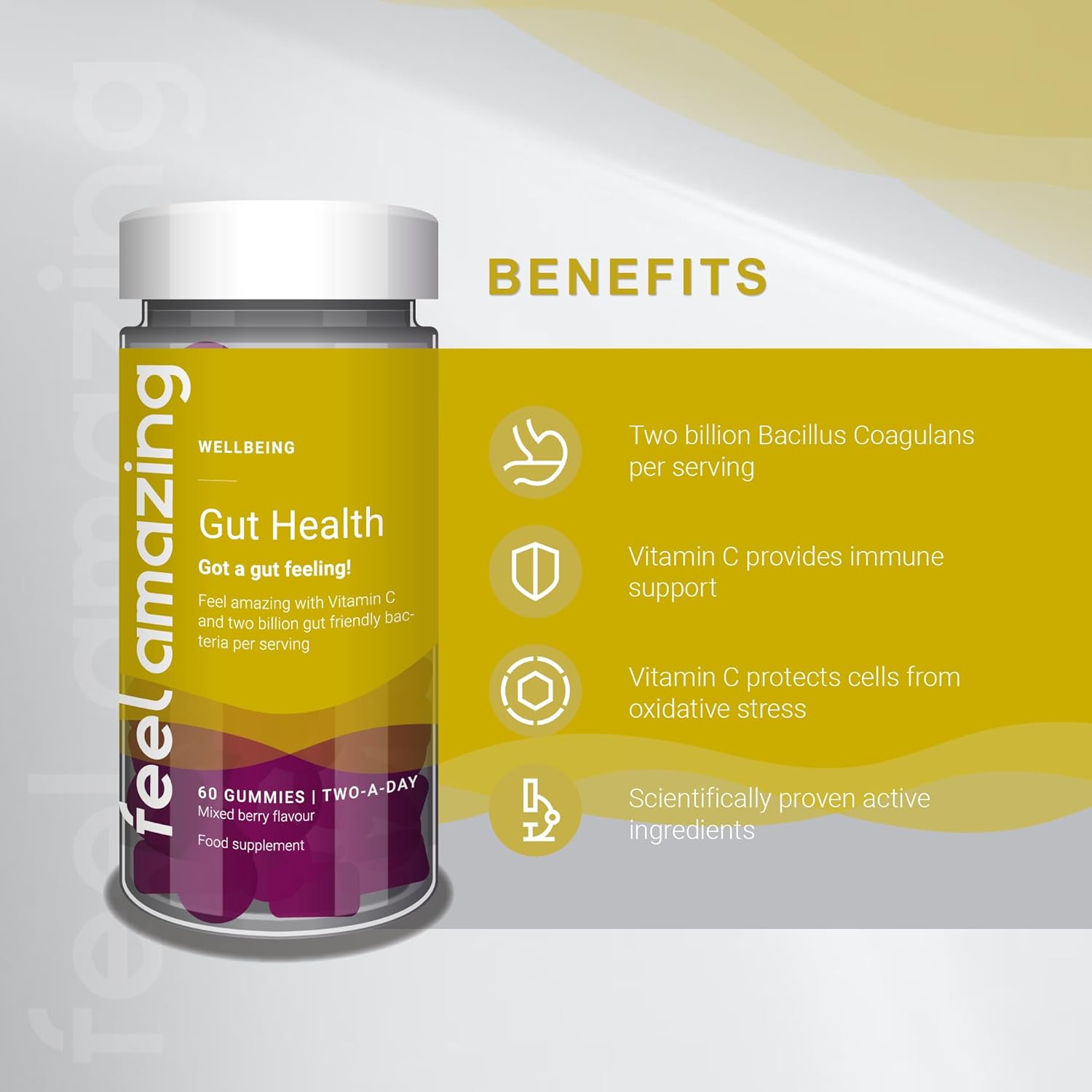 Feel Amazing Gut Health Probiotic Gummies – with 1 Billion Live Cultures & Vitamin C – 180 Orange-Flavored Gummies – 90-Day Supply (3 Months Supply)