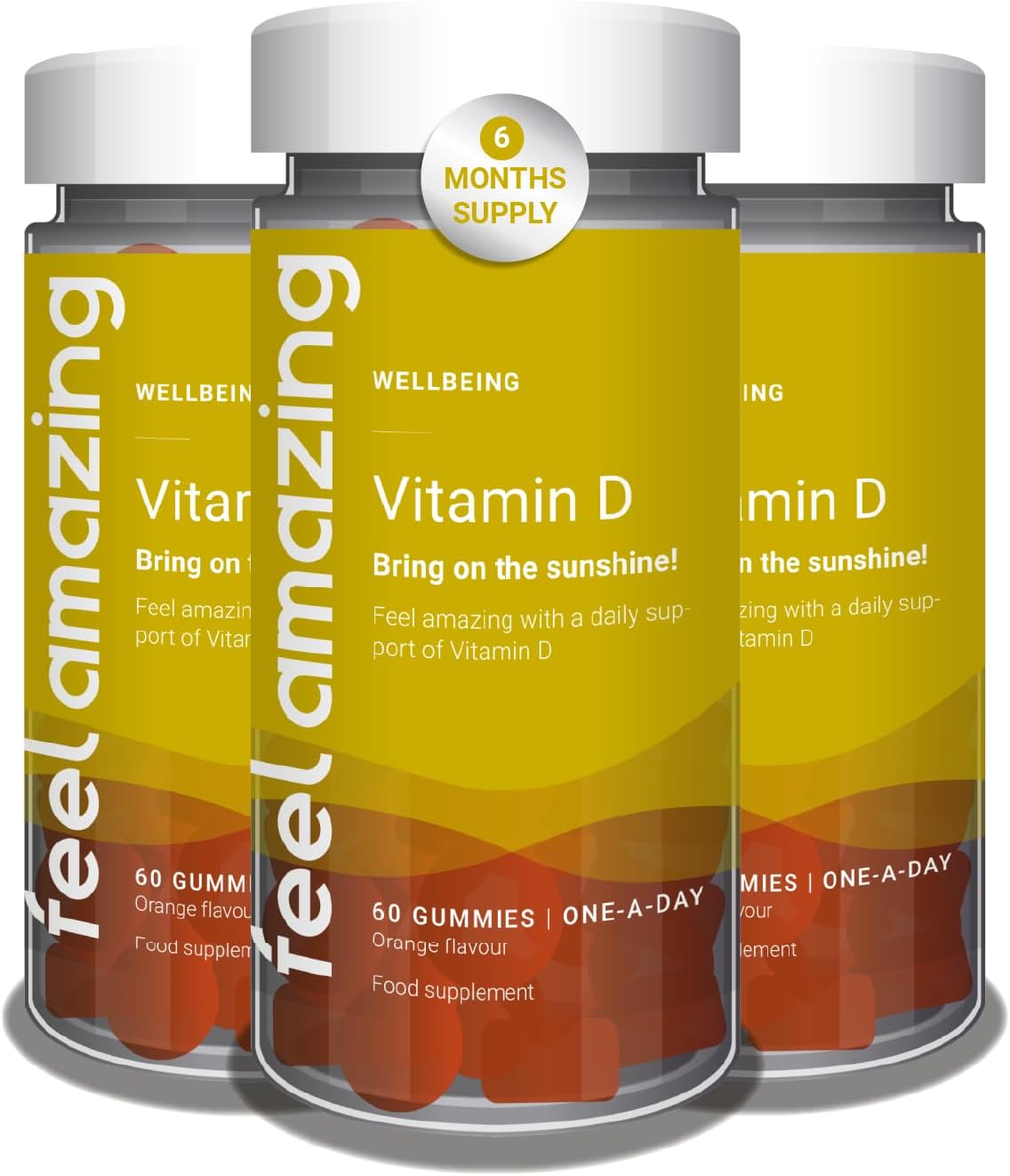 Feel Amazing Vitamin D Gummies, Vegetarian-Friendly, High Strength 25mcg, Supports Immune System, Bone & Muscle Health, 120 Count (4 Month Supply)