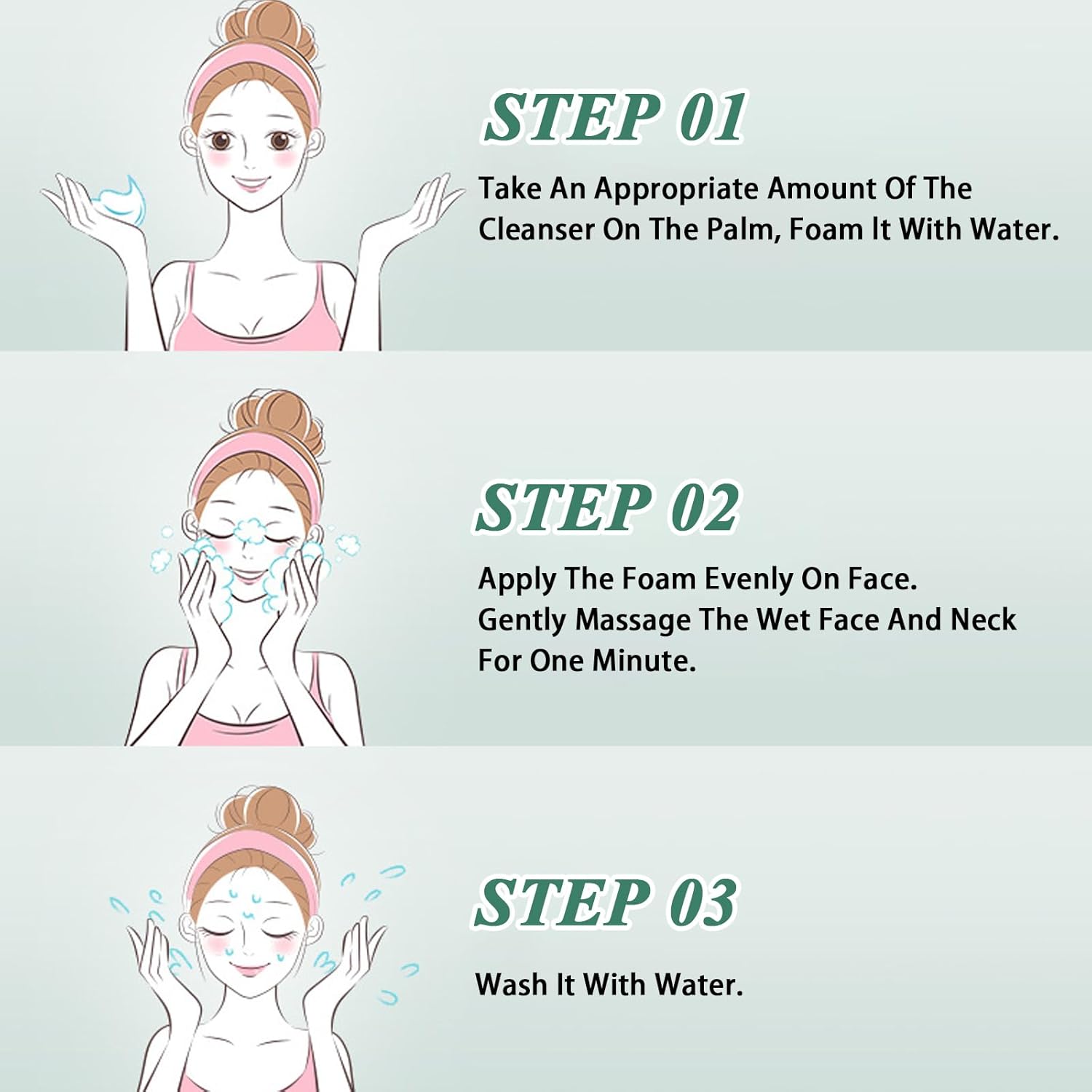 Step 1: Create a foam with the cleanser and water, gently massage onto the face, then rinse.