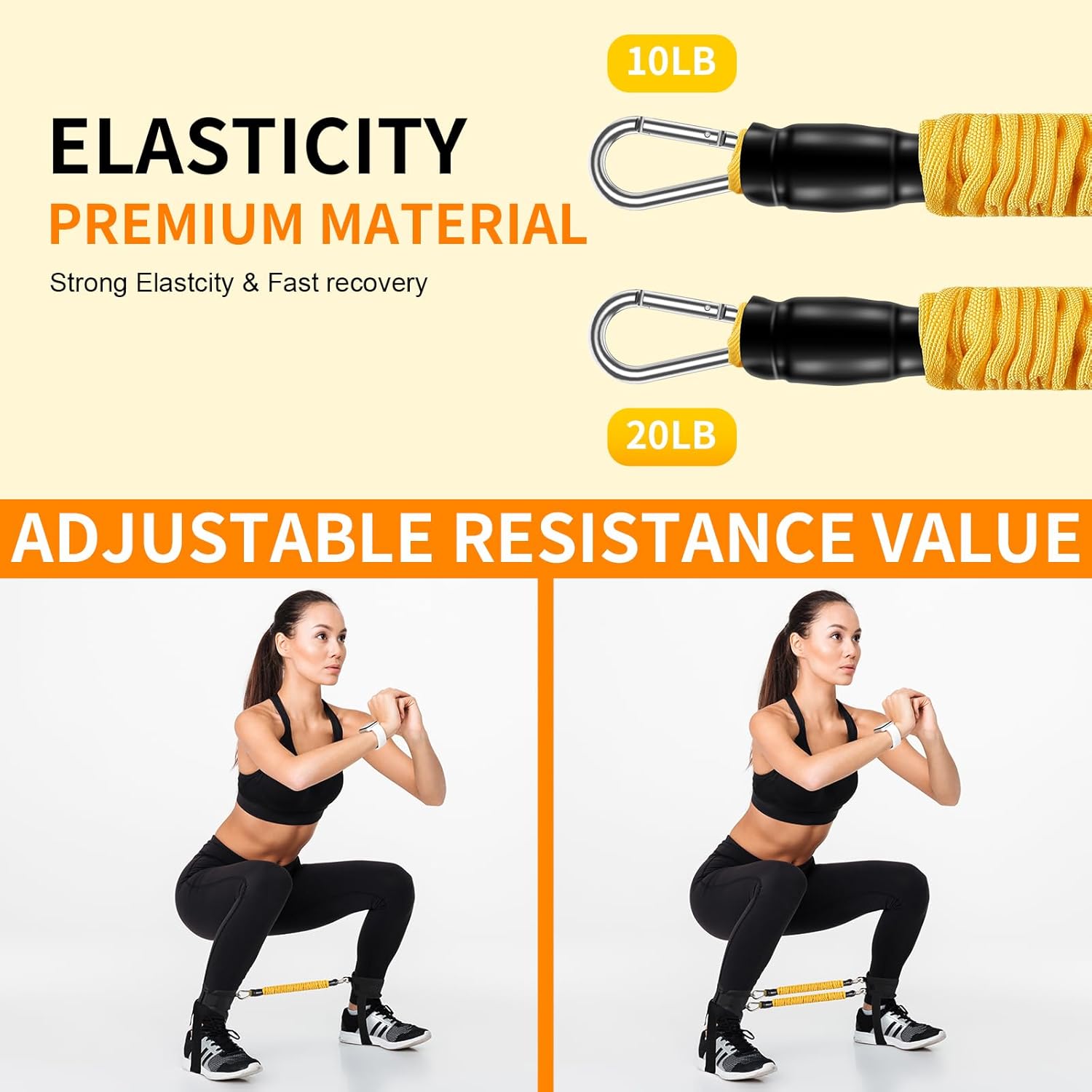 💪Resistance Band Set: Includes 3 resistance devices (10/20/30 lbs), 2*ankle cuffs,2*wrist cuffs and 2* handles. Provides multiple training methods and is simple and convenient for home workout equipment.