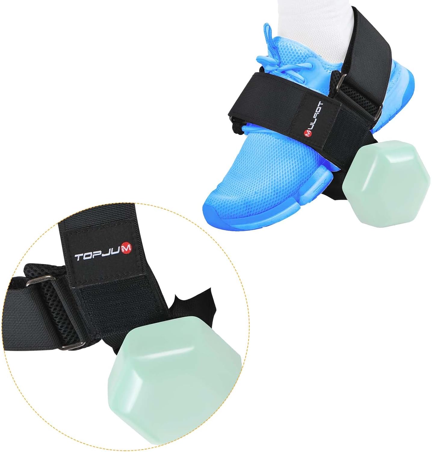 🏋️【Easy to Use】The ankle strap is designed to be simple and easy to use. It only takes a few steps to fix the dumbbell on the foot, and the adjustable length is suitable for most shoe sizes. This makes it very convenient to use, even for beginners.