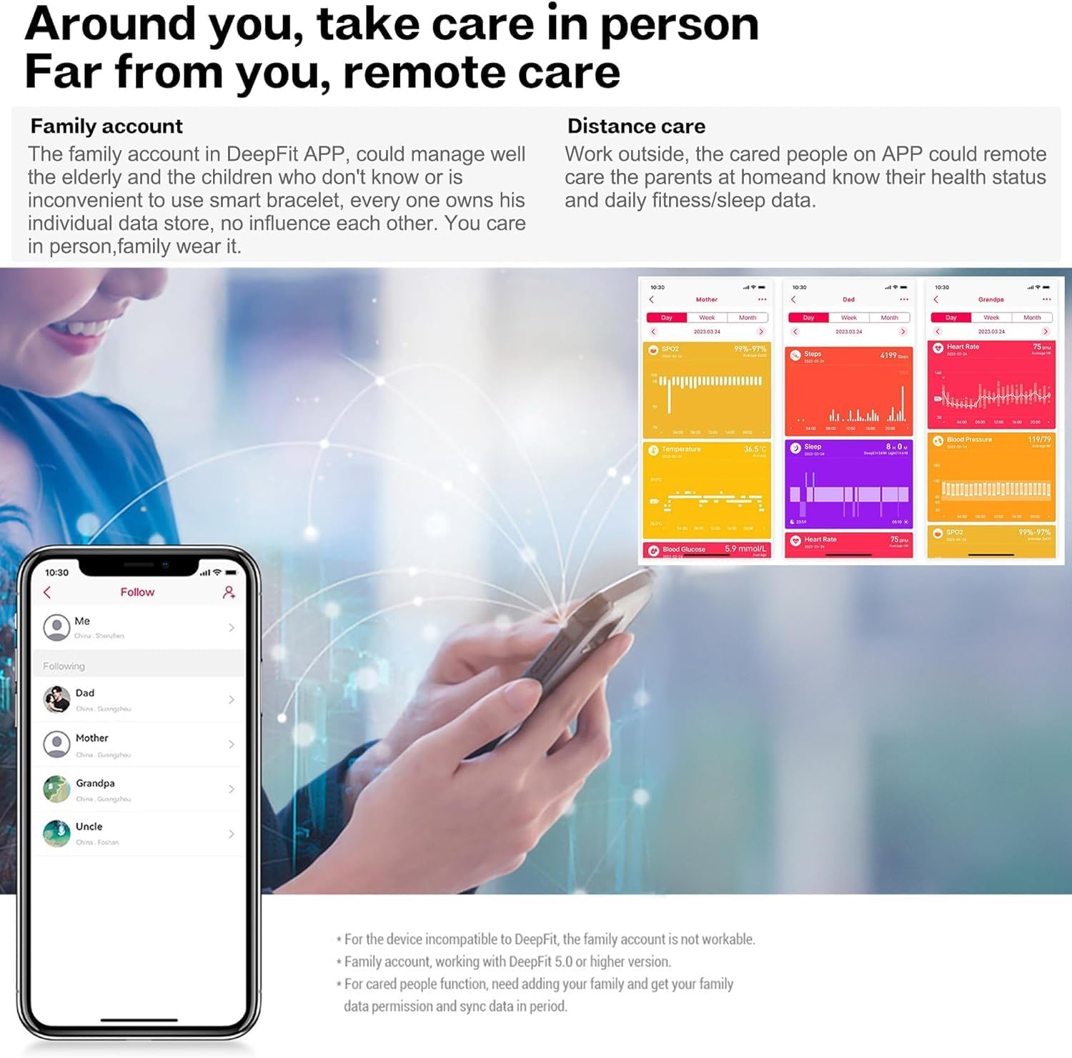 ⌚【Fitness tracker】 The health tracker has a built-in detection chip, and the data is accurate and safe. The blood pressure monitoring watch can monitor heart rate, blood pressure, step count, etc. 24 hours a day, and upload the complete data to the APP, allowing you to pay attention to your physical health in real time.