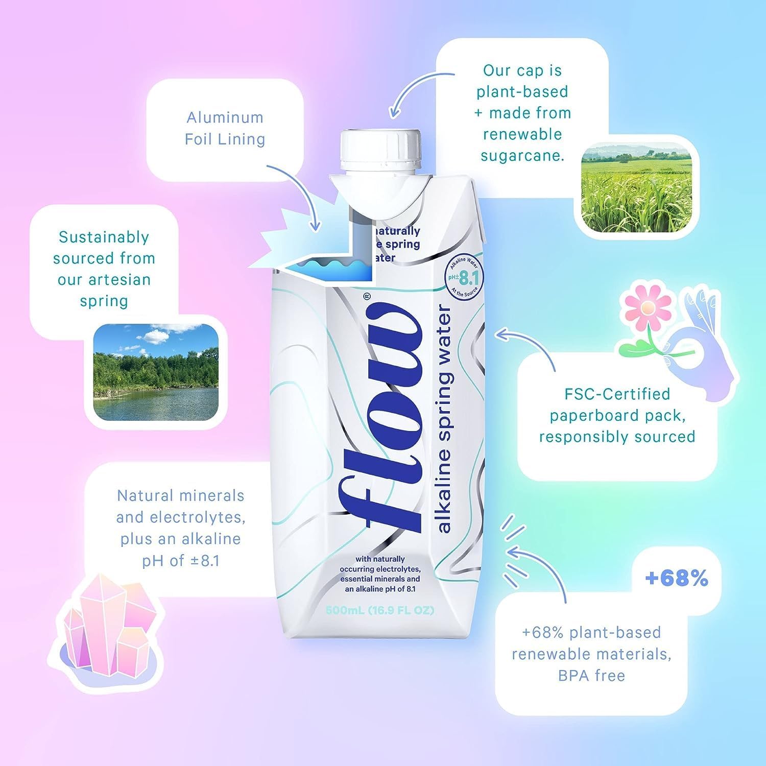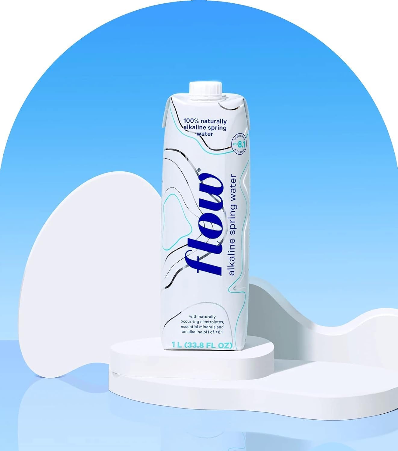 Flow Alkaline Spring Water, 100% Natural Alkaline Water, Eco-Friendly Packaging, Refreshing Taste, Boxed Mineral Water, Natural Electrolytes, Water with pH, Non-GMO, BPA-Free, Pack of 6 x 1L
