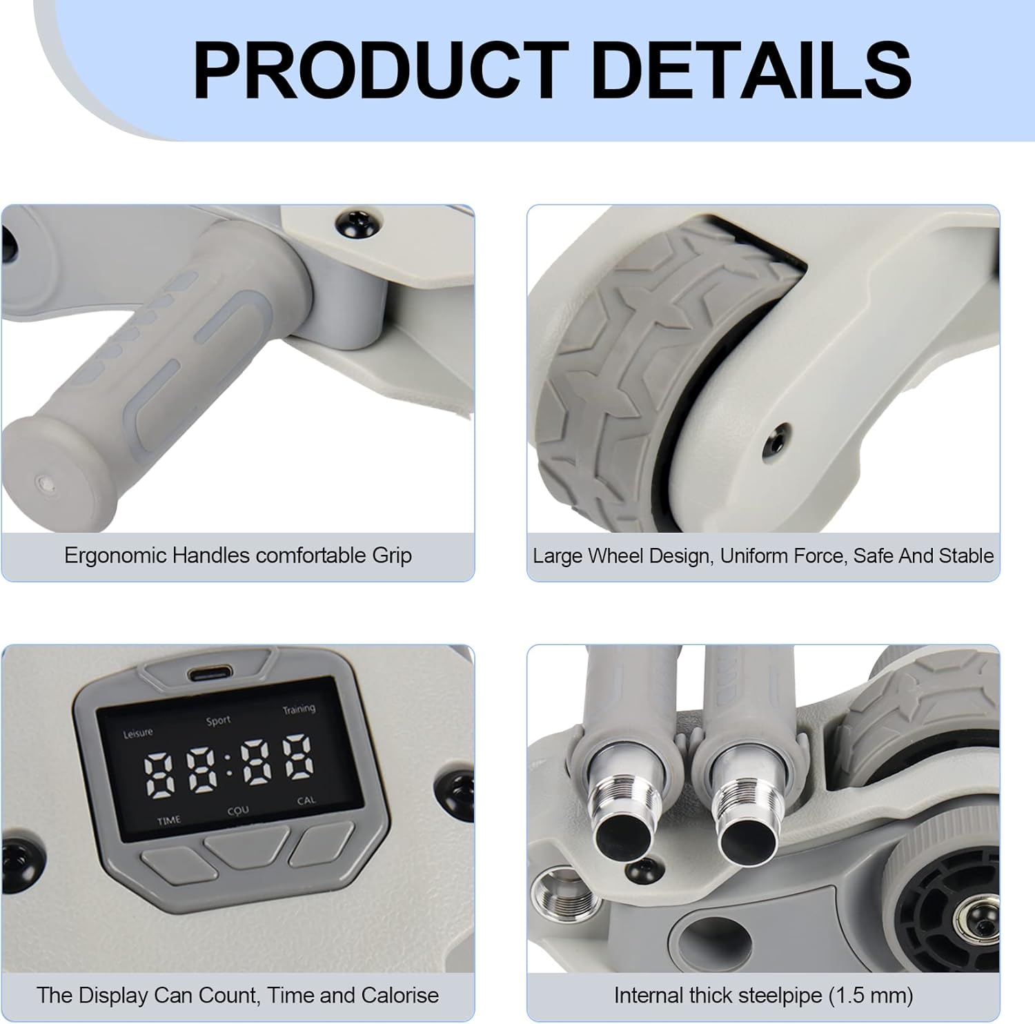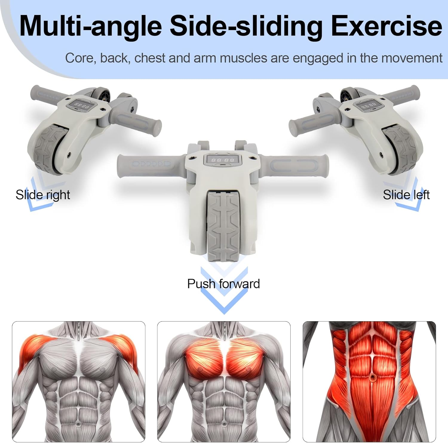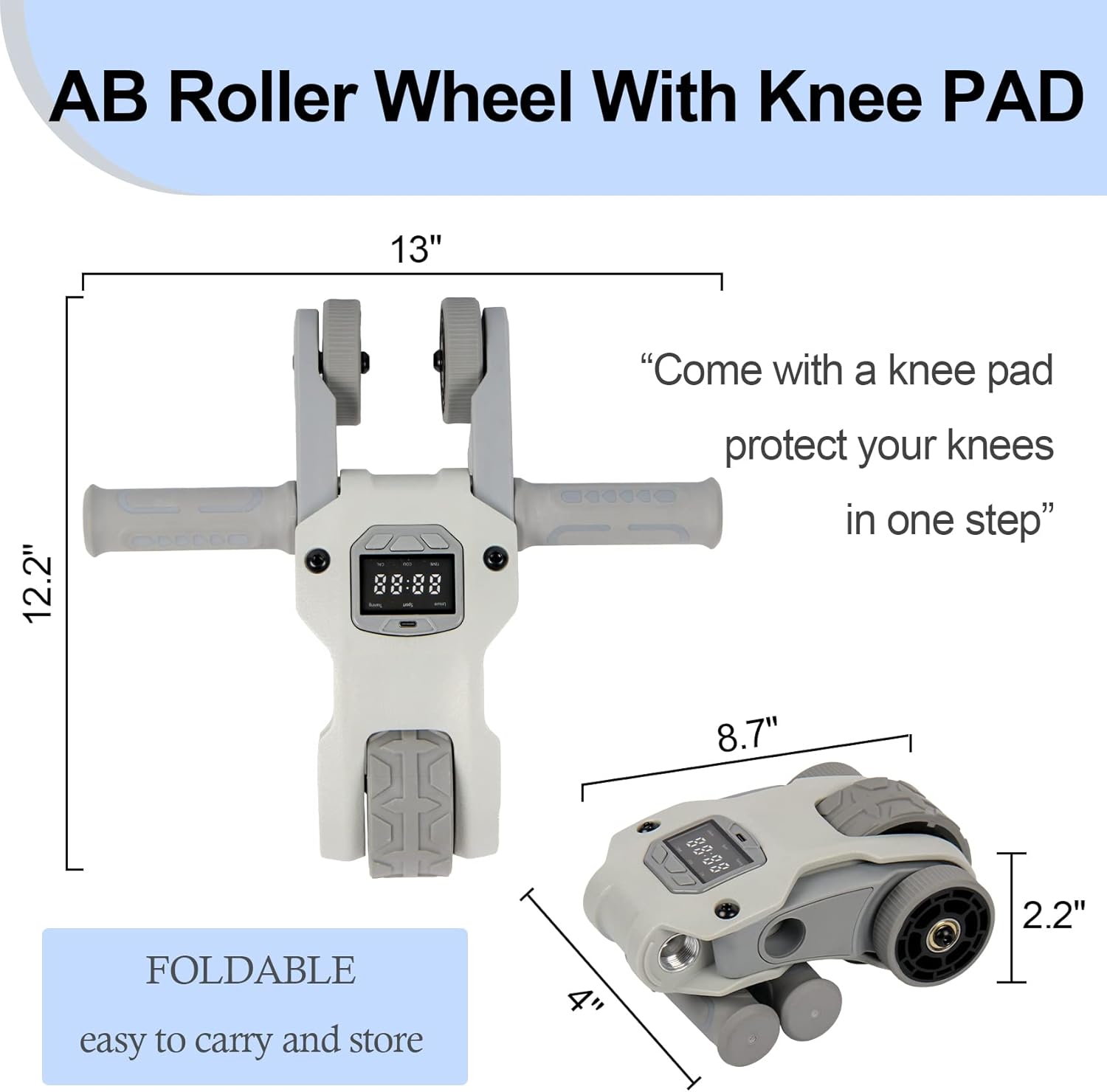 Folding Abdominal Roller Wheel with Intelligent Display, Abs Workout Core Exercise Equipment for Home Gym Fitness, 3 Wheels Design, with Knee Mat