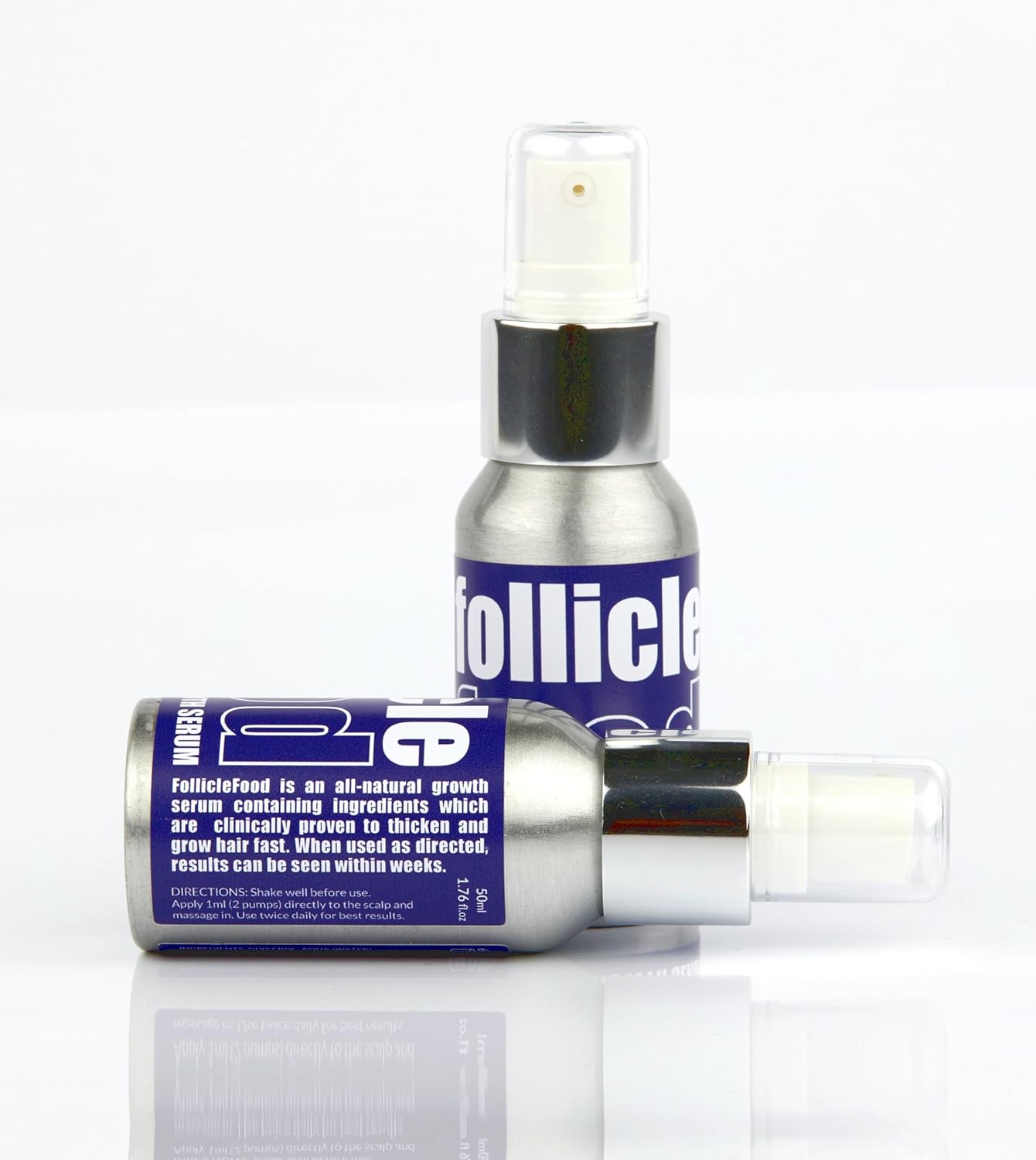 Follicle Food Natural Hair Growth Serum is an innovative, patented blend of naturally occurring ingredients that work together to permanently reverse the effects of hair loss. Hair loss is a natural progression that would affect 60% of the population. It can stem from stress, anxiety and sleep disorders, often causing the sufferer embarrassment and psychological stress. Over time, Follicle Food natural hair growth serum could work to reverse the effects of androgenic alopecia, alopecia androgenetica, alopecia seborrheica, alopecia areata and alopecia totalis in both men and women. These conditions are genetic conditions that cause partial or total hair loss in the affected individuals. Follicle Food serum can also be used to treat Alopecia universalia, which is a genetic condition that causes the total loss of hair over the whole body. FollicleFood is an all-natural growth serum containing clinically proven ingredients that will thicken and grow hair fast. When used as directed, results can be seen within weeks. DIRECTIONS: Shake well before use. Apply 1ml (2 pumps) directly to the scalp and massage in. Use twice daily for best results. INGREDIENTS: Glycerine, Water, Vitamin B12, Biotin, Selenium, Magnesium Aspartate, Valine, Leucine, Isoleucine.