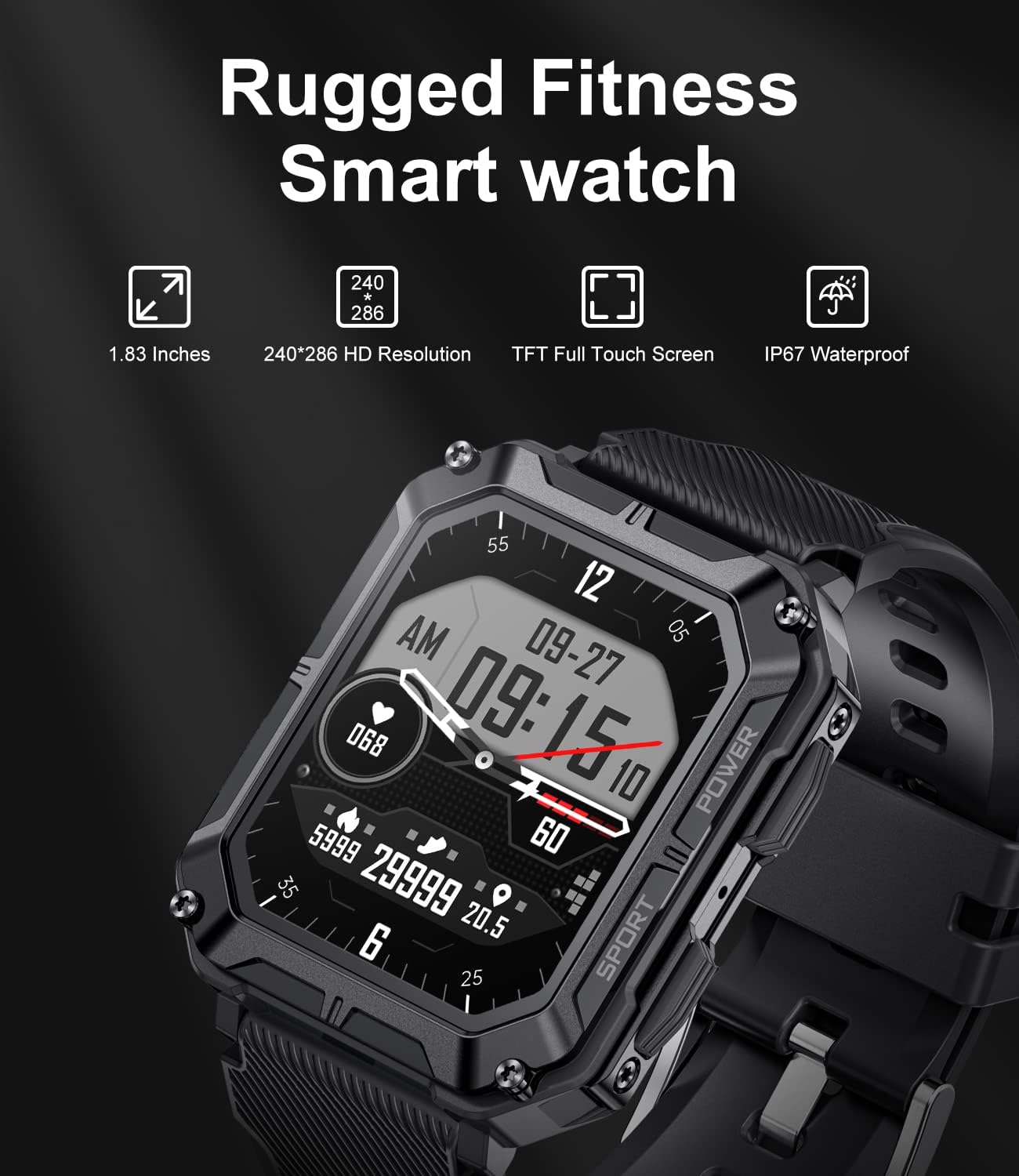 【Military Standard Certification】Special compliance material and metal casing make this military outdoor smartwatch pass several military tests such as extreme temperature, dustproof, drop-proof and liquid contamination, men’s smartwatch ensures you use it confidently in the outdoors and it can be your constant and reliable companion. The outdoor smartwatch comes with an extra camouflage strap to match your outdoor sports.