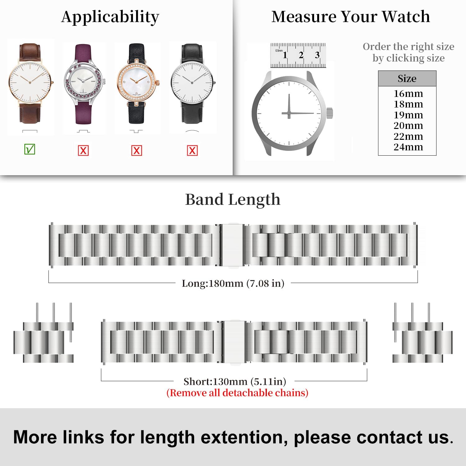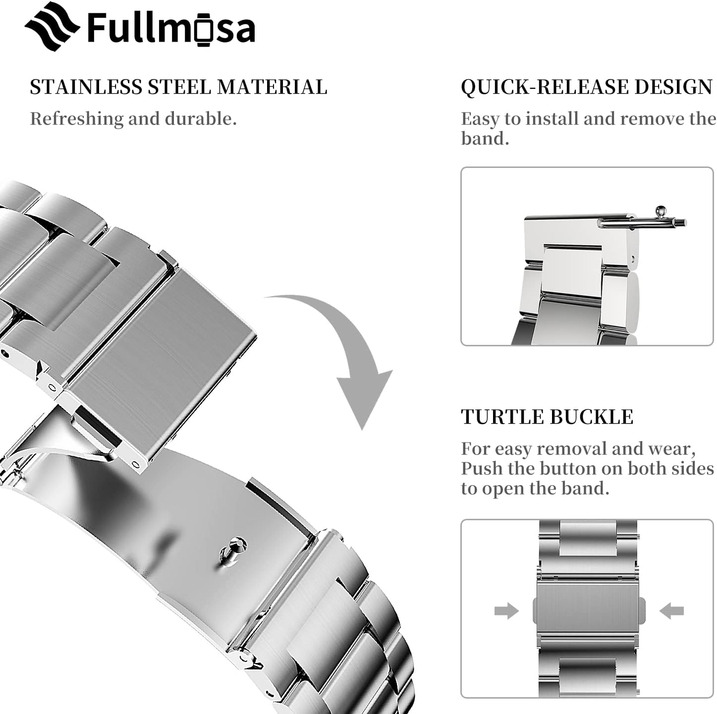 【Premium Metal Material】 Fullmosa watch strap is crafted from premium 304 stainless steel. Finely polished surface highlights luxury, nobility and durability. Precise attention to every detail in terms of workmanship, design and aesthetics.