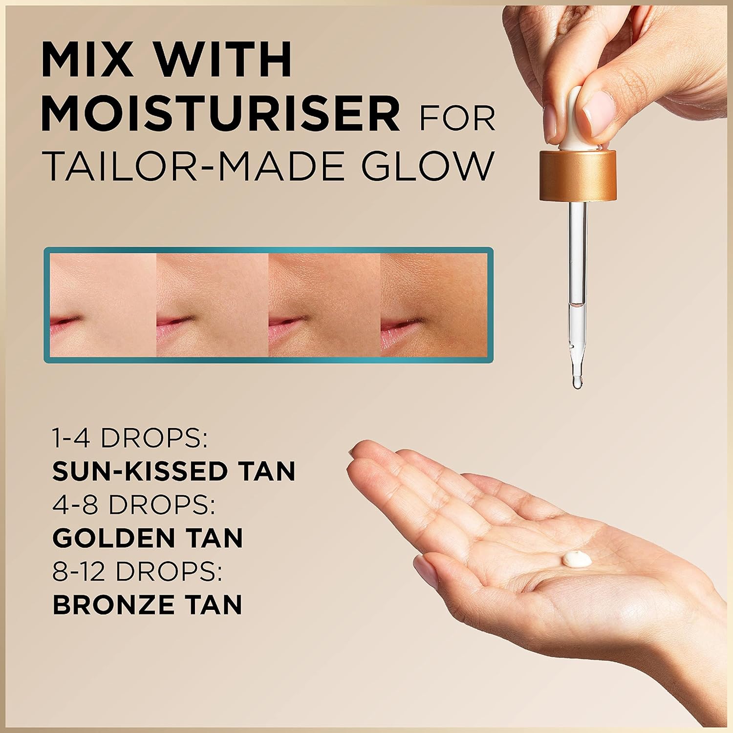 - 1-4 drops: sun-kissed tan