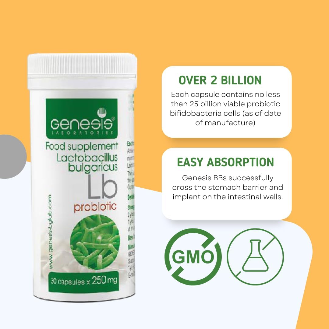 Genesis LB Probiotic with Lactobacillus Bulgaricus 30 Capsules of 240 mg