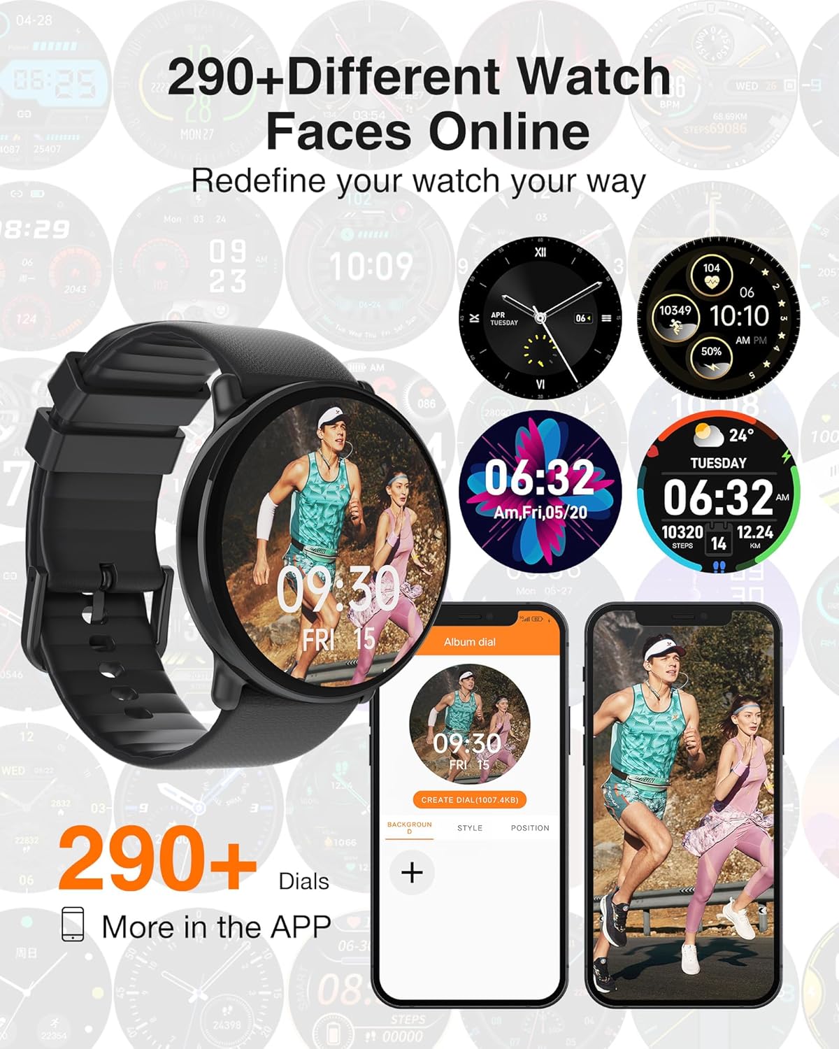 🌈【Brilliant screen, Ever-changing style】: Smart watch has a 1.43-inch AMOLED screen and more than 290 built-in online watch faces. It also supports you to upload personal photos to create a unique screen style. It also provides a variety of practical small functions, including music playback, stopwatch, breathing training, remote control photography, calculator, calendar, etc., providing you with a more convenient and diversified smart experience.(Down “FitCloudPro” APP, explore it)