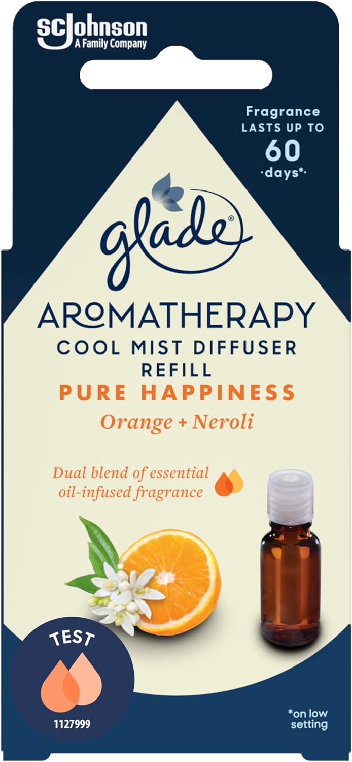 Glade Aromatherapy Essential Oil Diffuser Refill, Cool Mist Aromatherapy Diffuser & Air Freshener for Home, Pure Happiness with Orange & Neroli Scent, 17.4 ml