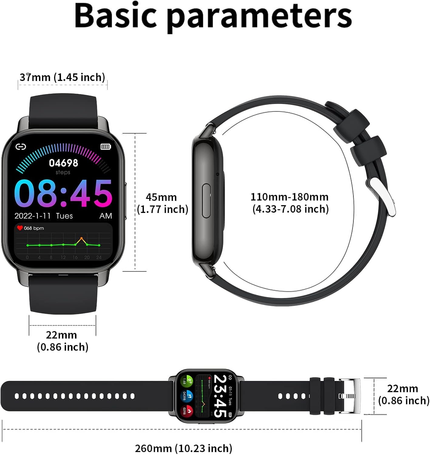 【More Features You Might Like】:(1). Music player: The watch adopts a high-performance decoding chip, and it supports independent music playback on the wrist;(2). 100+ custom dials,support mobile phone uploading photos to the watch as wallpaper, operate as you like,;(3).Compatibility: Both Android and Apple systems are one-key connections, easy to operate, and compatible with Android 5.0 +, and iOS 9.0+.