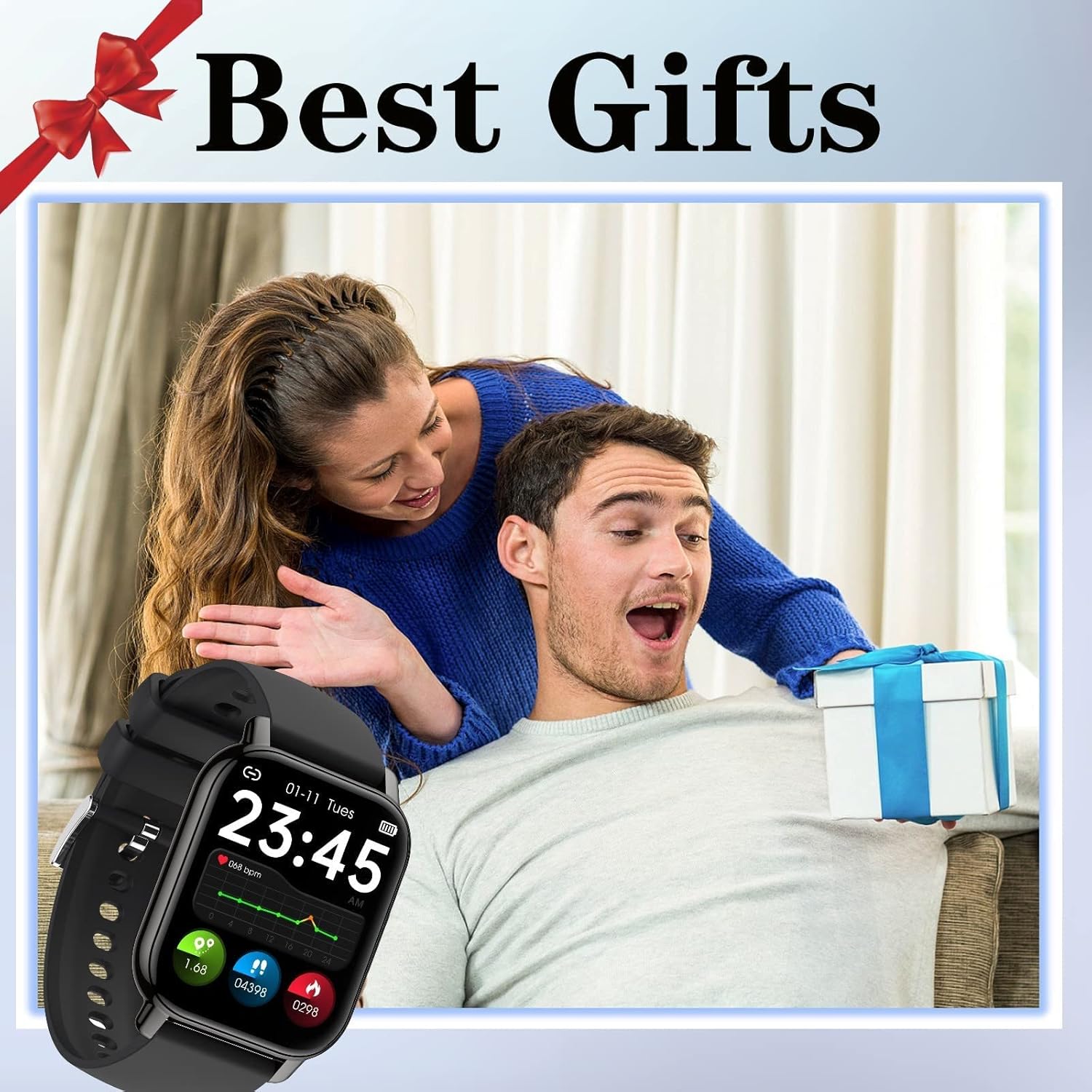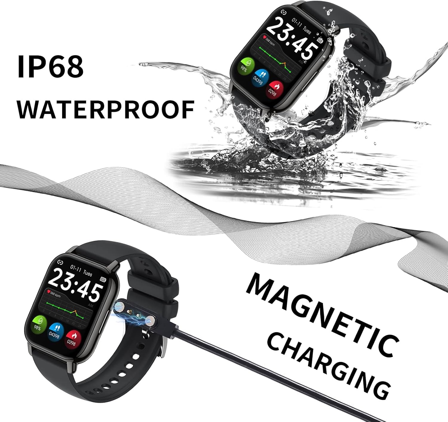 Goodatech Smart Watch for Men Women,Phone Call Smartwatch,IP68 Waterproof,Fitness Tracker, Pedometer,Message Notification,Music Player,Health Monitor,Compatible with iOS Android Phones (Black)