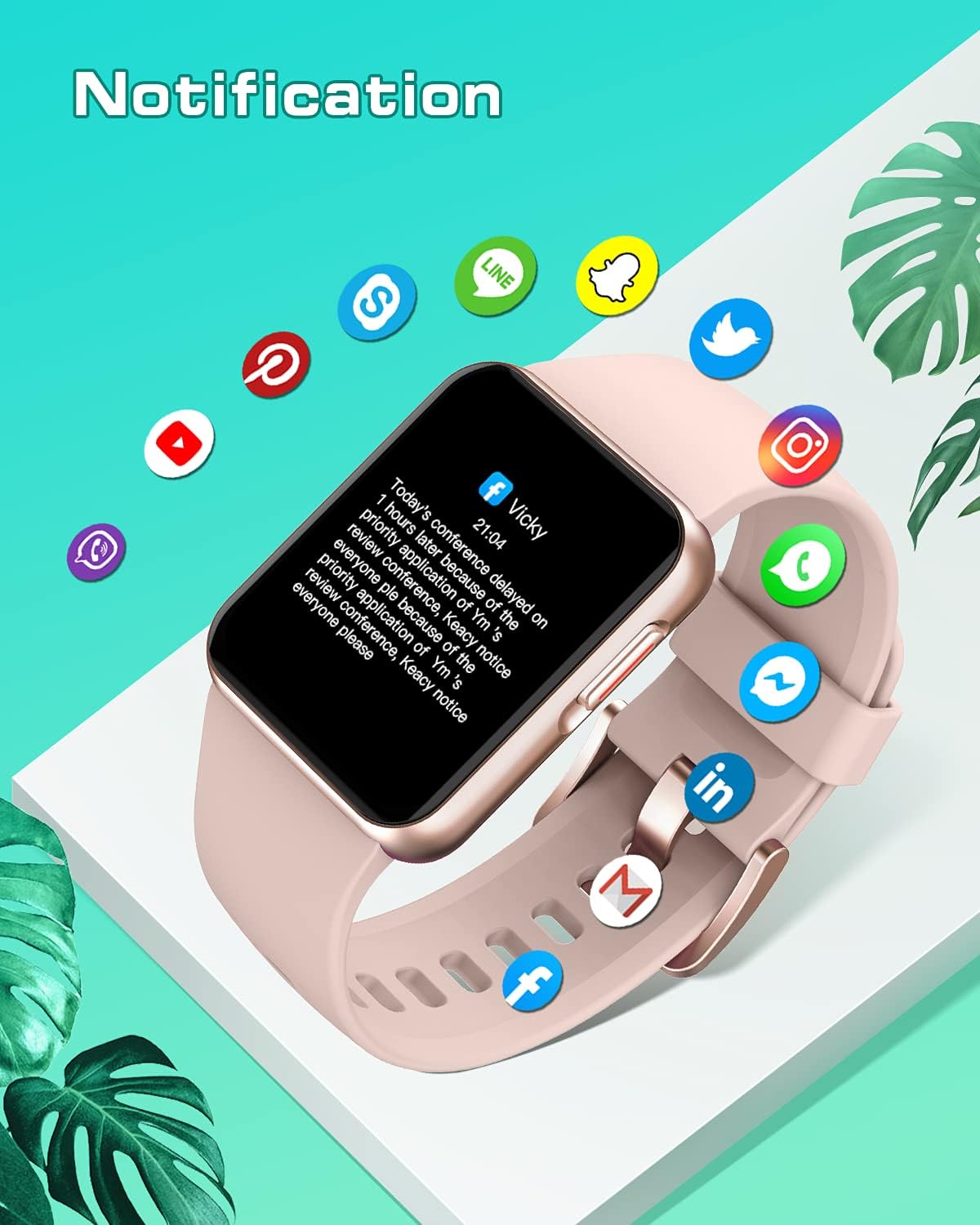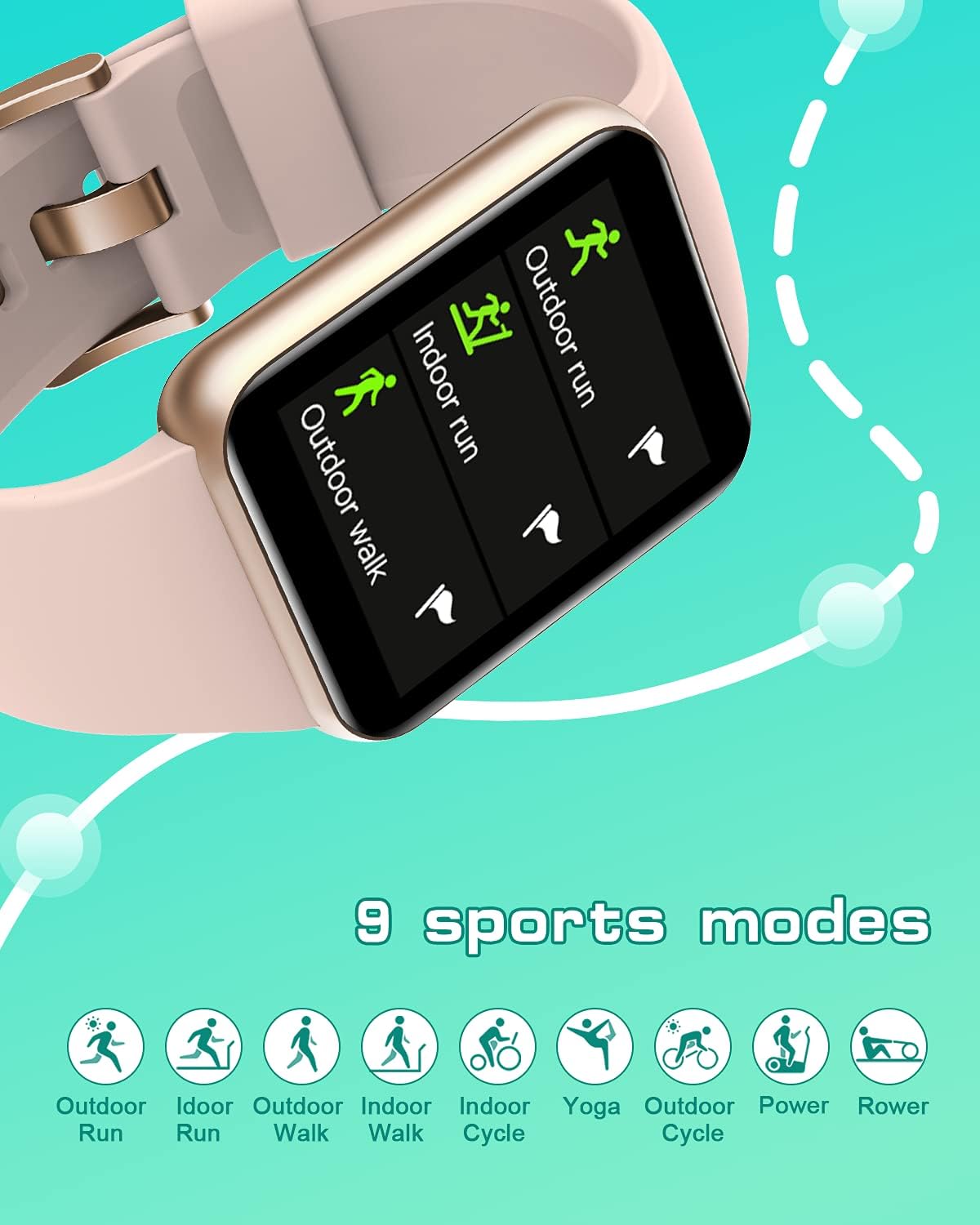 【9 Workout Modes, Blood oxygen monitor】This smart watch has 9 workout modes walking, running, cycling, yoga etc. whether you’re into yoga or high-intensity interval training, the watch also keeps track of your calories and duration of the workout. It can track the exact workout metrics you need.Start detecting SpO2 with a simple touch. Only a few seconds, it will show the detecting data accurately and give you a reference to pay attention to your health.