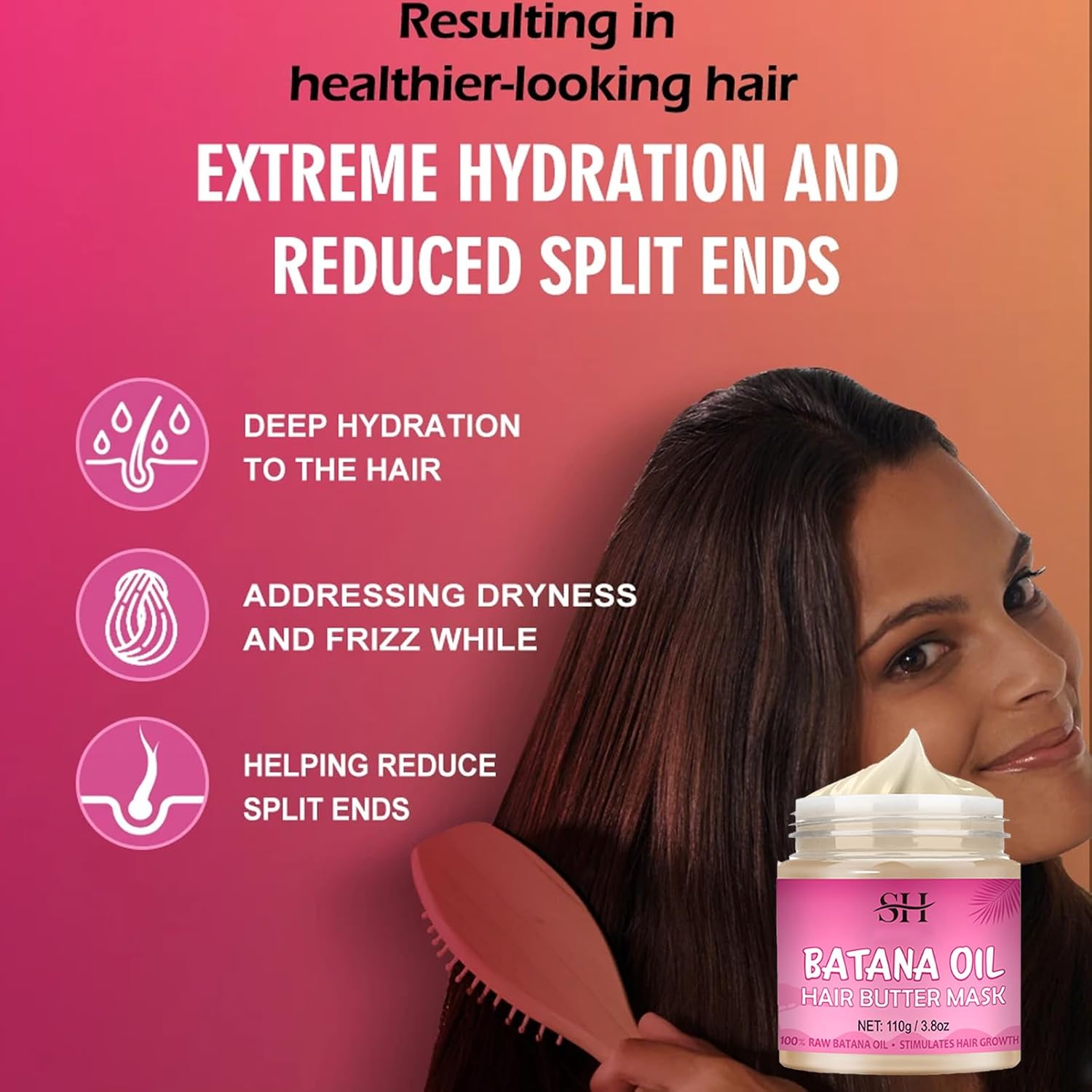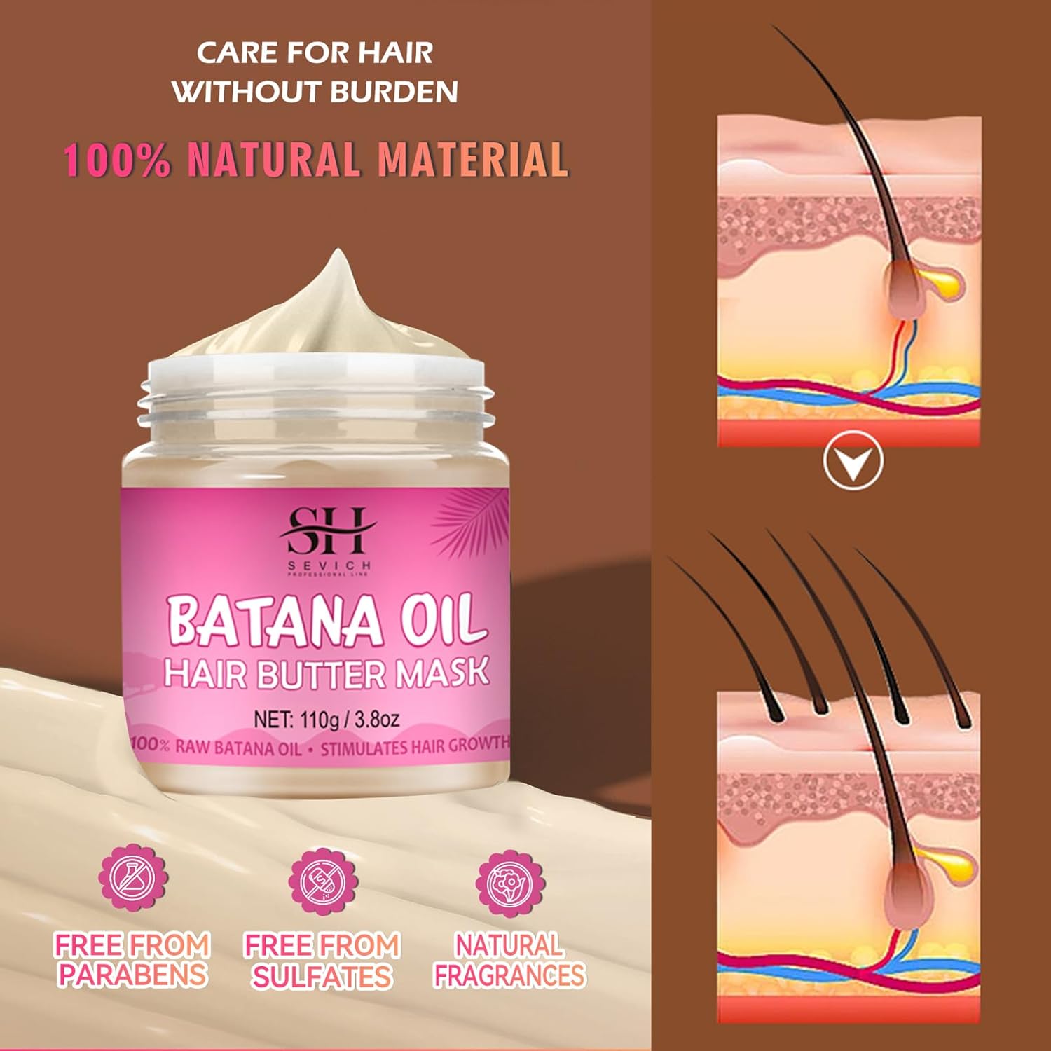 Hair Butter with 100% Pure Raw Batana Oil,From Honduras Batana Oil for Hair Growth,Hair Growth Butter for All Hair Types,Promotes Hair Strength,110g