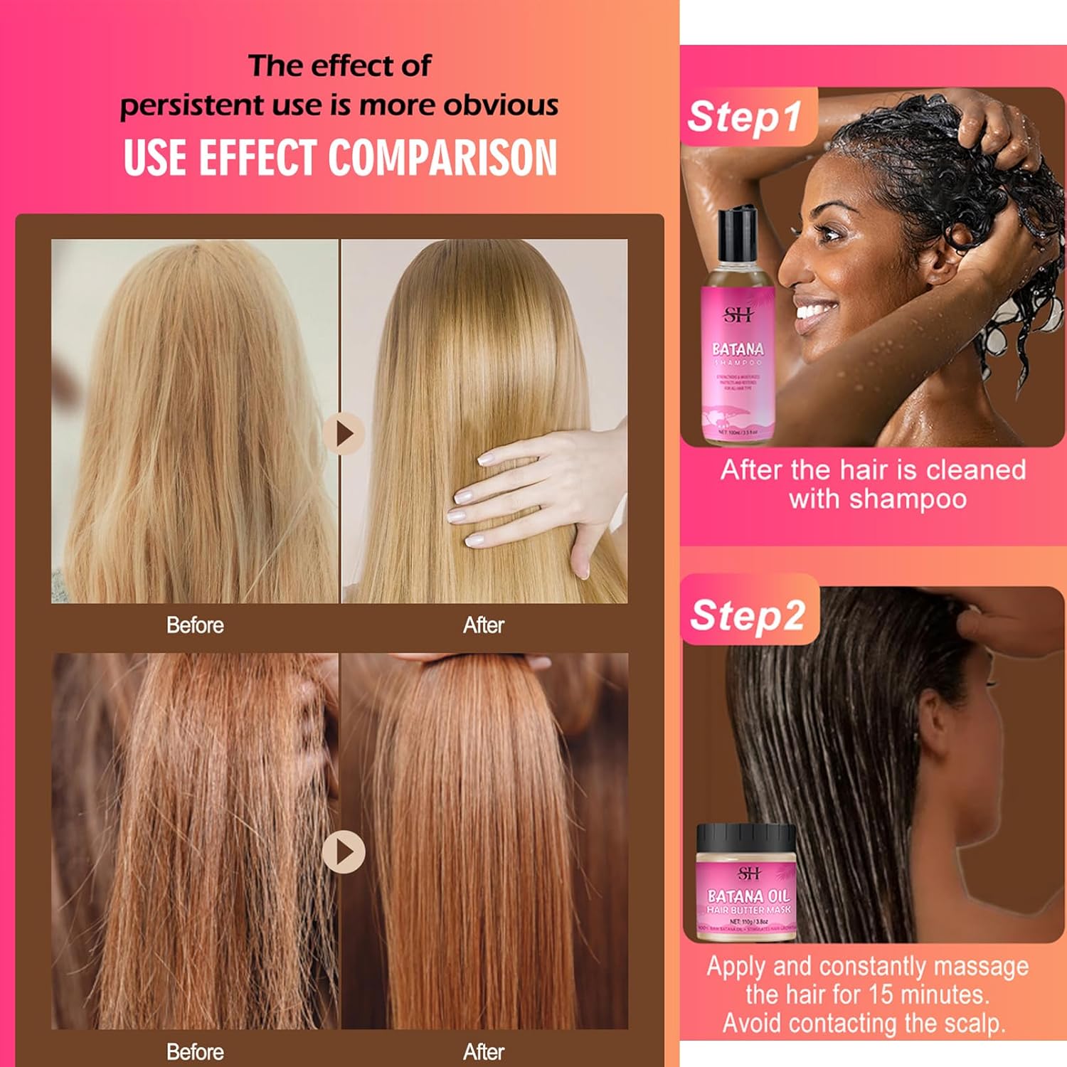 【Easy to Use 】Apply an appropriate amount to the scalp and massage for 3-5 minutes.use Batana Oil as part of your hair care routine to strengthen, nourish and moisturiz.