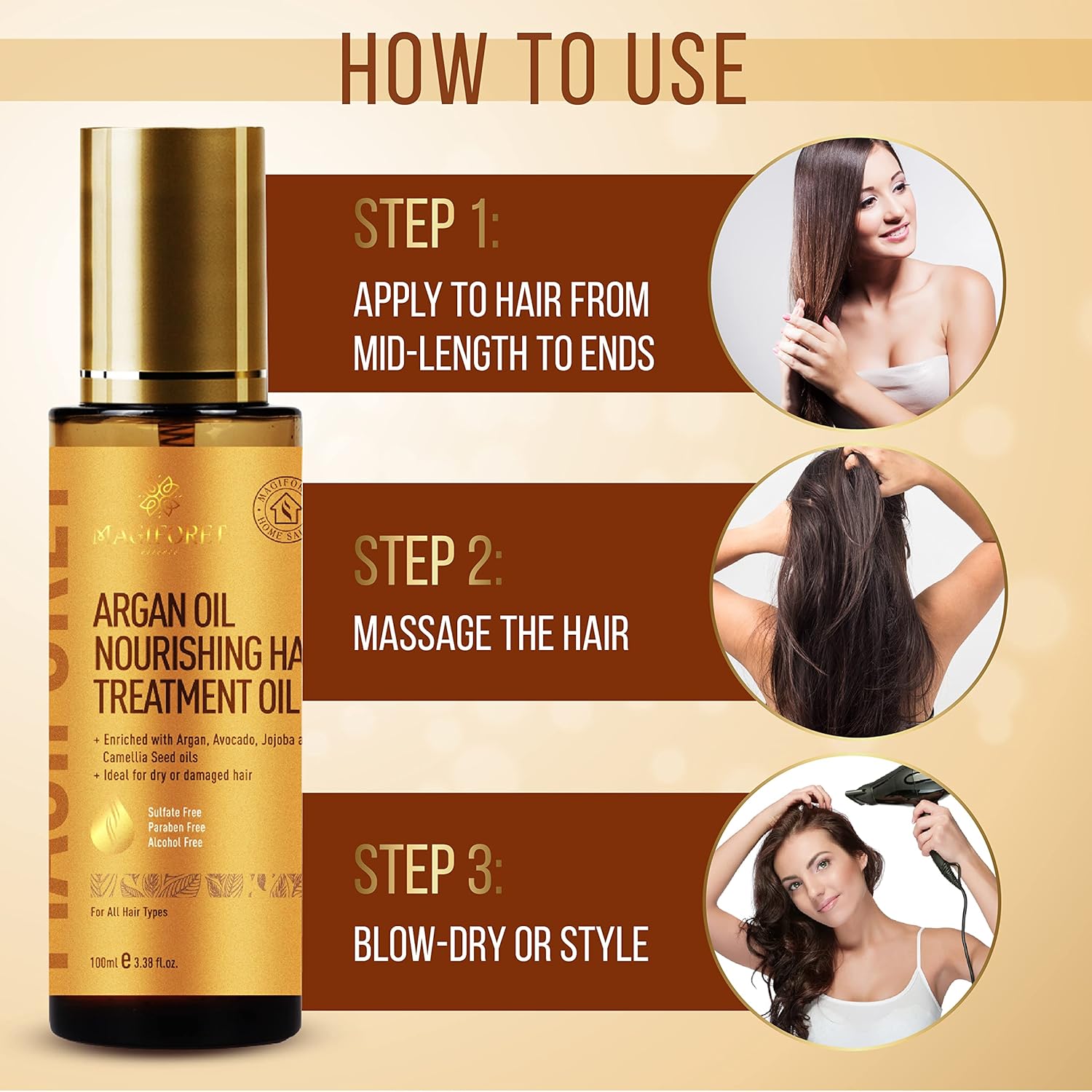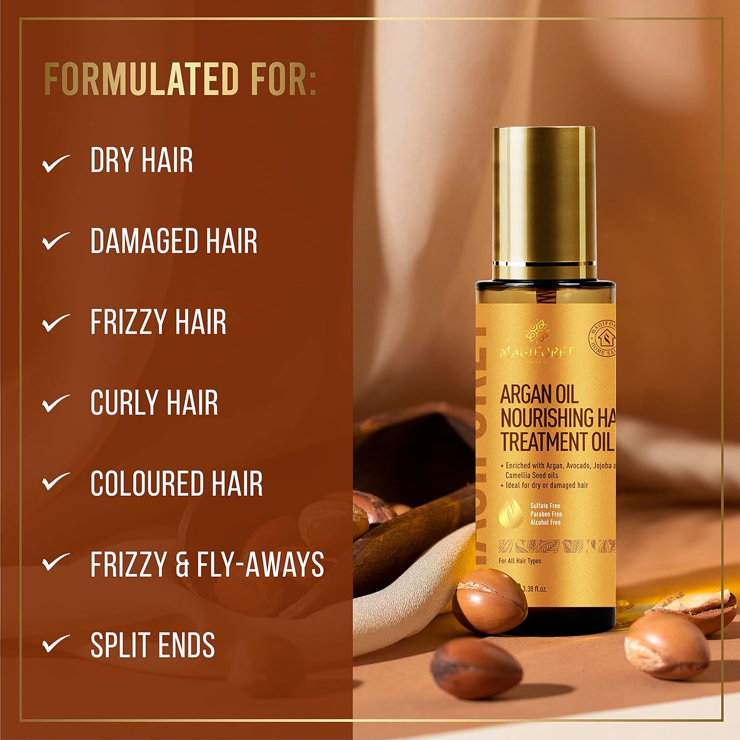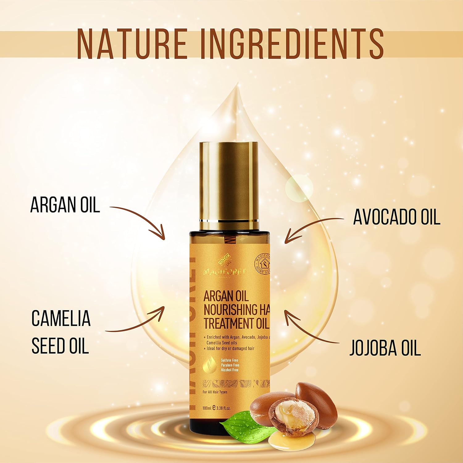 Hair Serum, MagiForet Hair Oil with Argan, Avocado, Jojoba and Camellia Seed oils for Dry Damaged Hair, Frizz Control, Shine, Nourishment, Heat & UV Protection