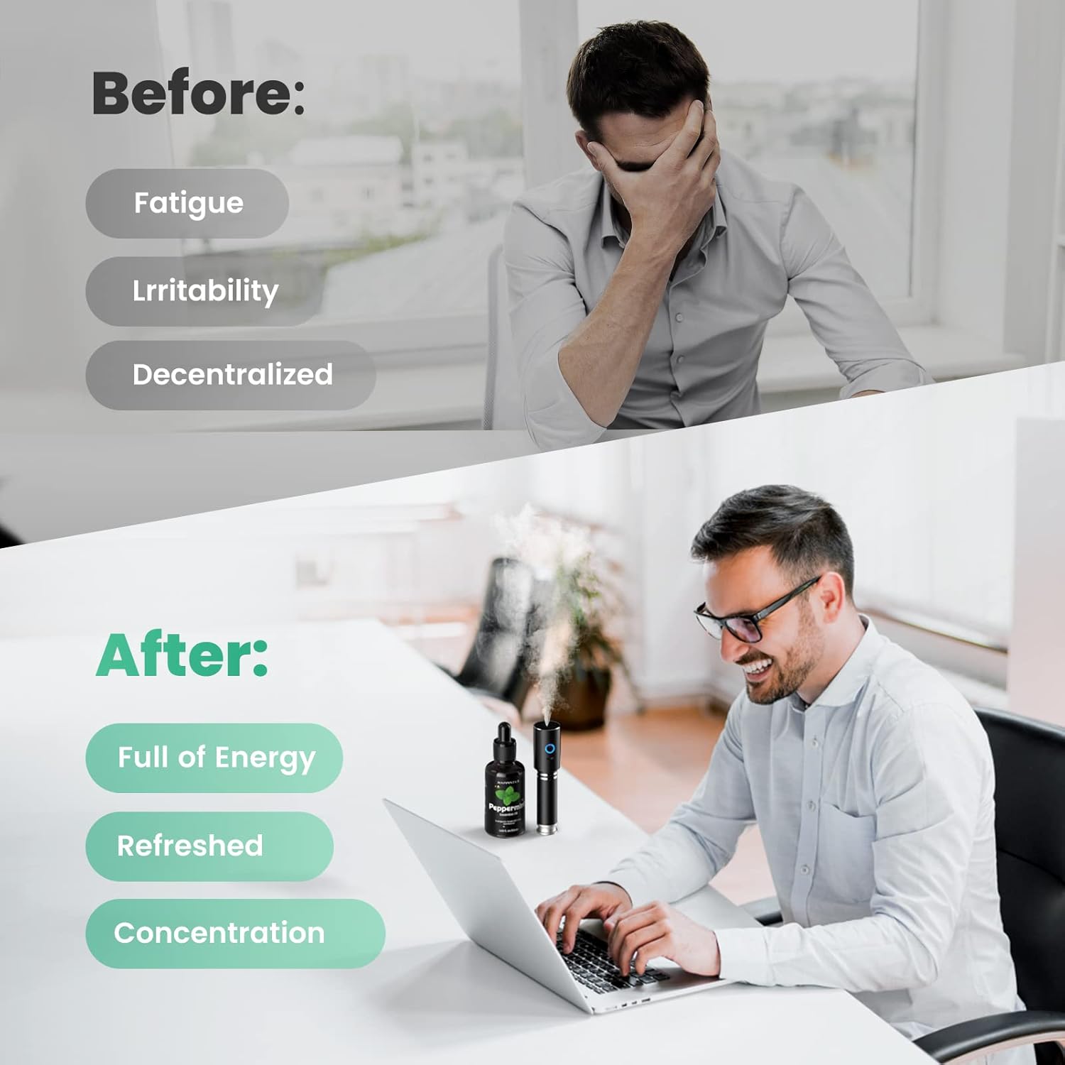 【With Diffuser】In order to better enjoy this high-quality peppermint essential oil, we have prepared a special mini diffuser for you, which is more convenient to use and can be taken with you. This high quality mini diffuser, with specially designed shape and suitable weight, runs smoothly and quietly. Accompanied by a diffuser, you’ll enjoy a private VIP moment of peppermint essential oil whenever you shower, drive or take a lunch break.
