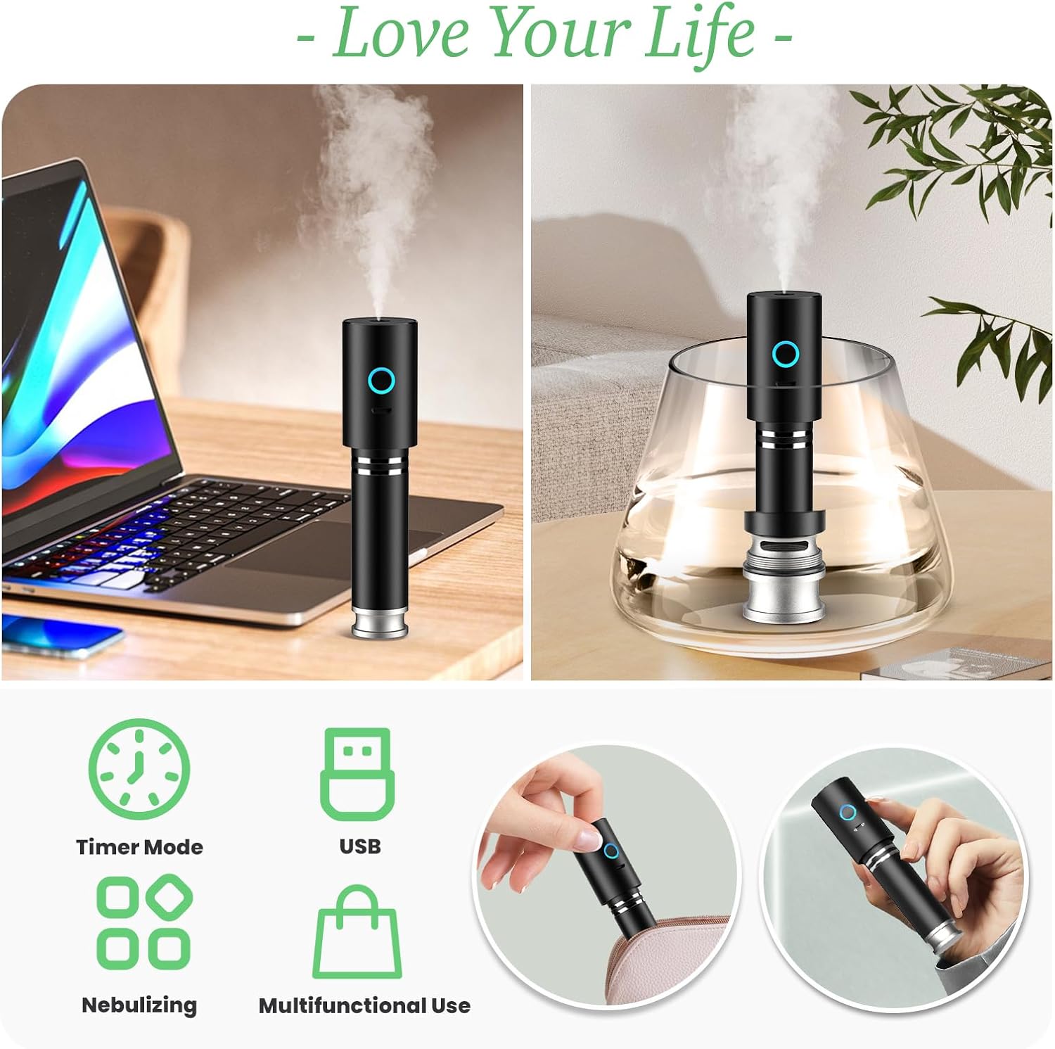 【Portable Essential Oil Diffuser】Timing Setting: press the button for 3 seconds when fogging, spray for 2 seconds every 4 minutes, up to 2 hours. Use it however you want. Rechargeable with USB cable (included) ,USB Charging time:30min can run for 2.5 hours.