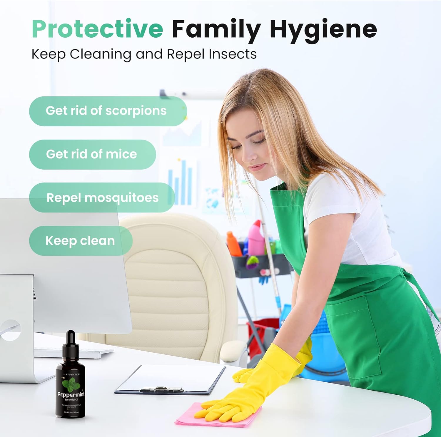 【Effective Essential Oil】Diluted peppermint essential oil can relieve headaches, motion sickness, seasickness, relieve fatigue, itching and other discomforts. Therapeutic grade safe essential oils bring a better experience. Cleans the air, relieves breathing problems, reduces smoke/sweat smell, and brings a good mood. Can be used for home, office, car, pendant, hair care and cleaning.