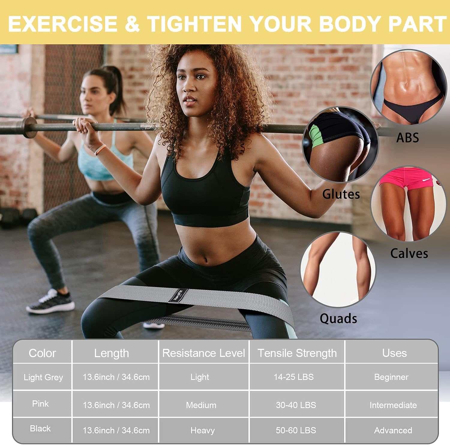 [3 Different Resistance Levels]: The booty bands for women are set to light (gray), medium (pink), and heavy (black) three resistance levels. Cloth resistance bands for legs are suitable for different level workouts, from beginners to fitness experts, making sure to meet all your workout goals and intensity levels.