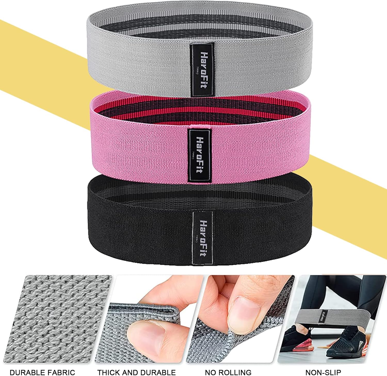 [Top Quality]: HAROFIT Booty Bands are sewn from high-quality durable fabric, these glute bands are durable, comfortable, environmentally friendly and skin-friendly, the high-quality material offers great elasticity and strong resistance. The work out bands for exercise will not break during exercise.