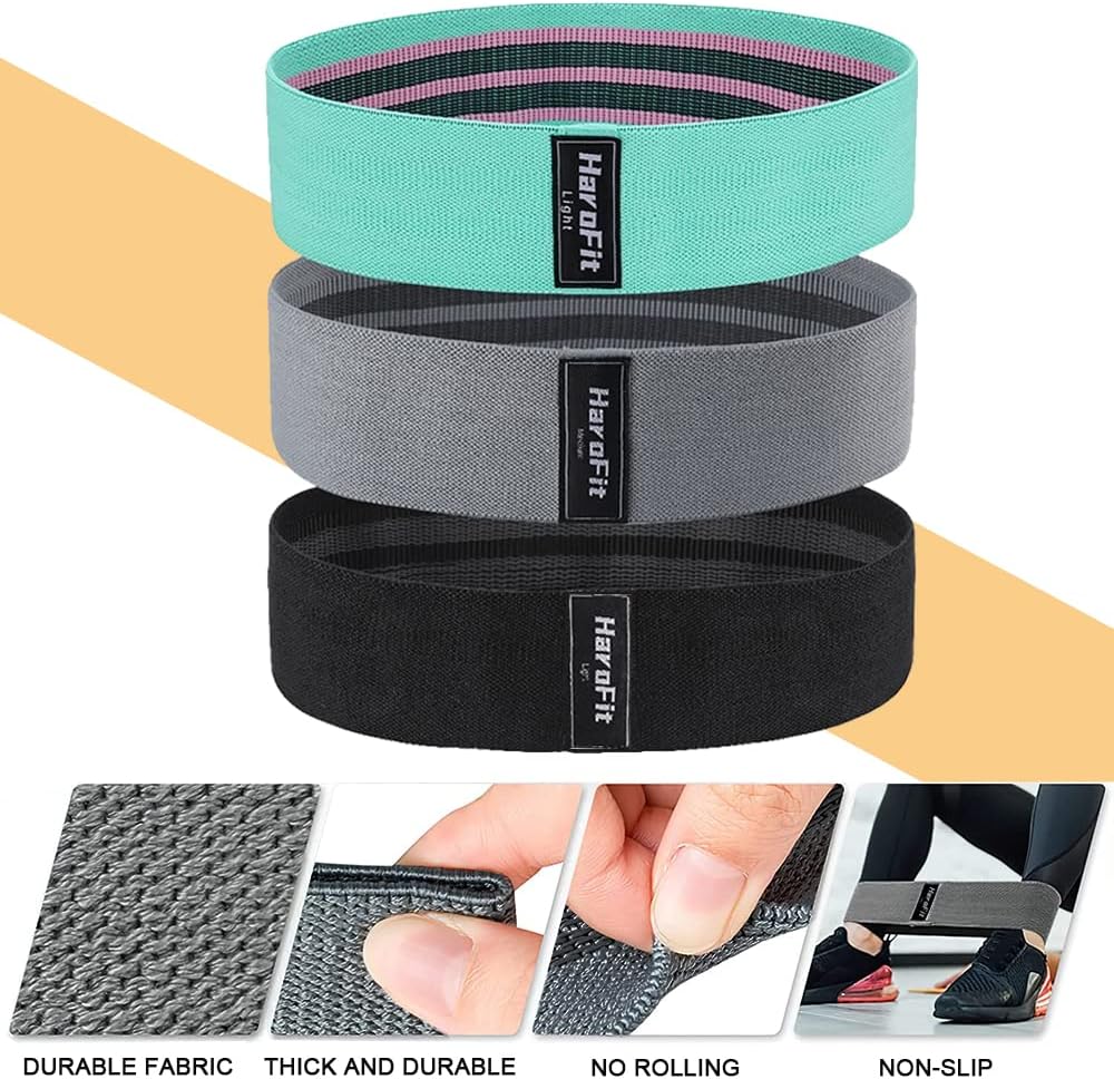 [Multifunctional]: HAROFIT Workout bands for women are very suitable for yoga, Pilates, weightlifting, squats, hot yoga and beach fitness, hip bridge, and other exercises. Cloth bands for working out help you exercise muscles and improve arms, and legs in a gentle and effective way. For buttocks and shoulders, booty bands are the best choice for exercise and fitness.