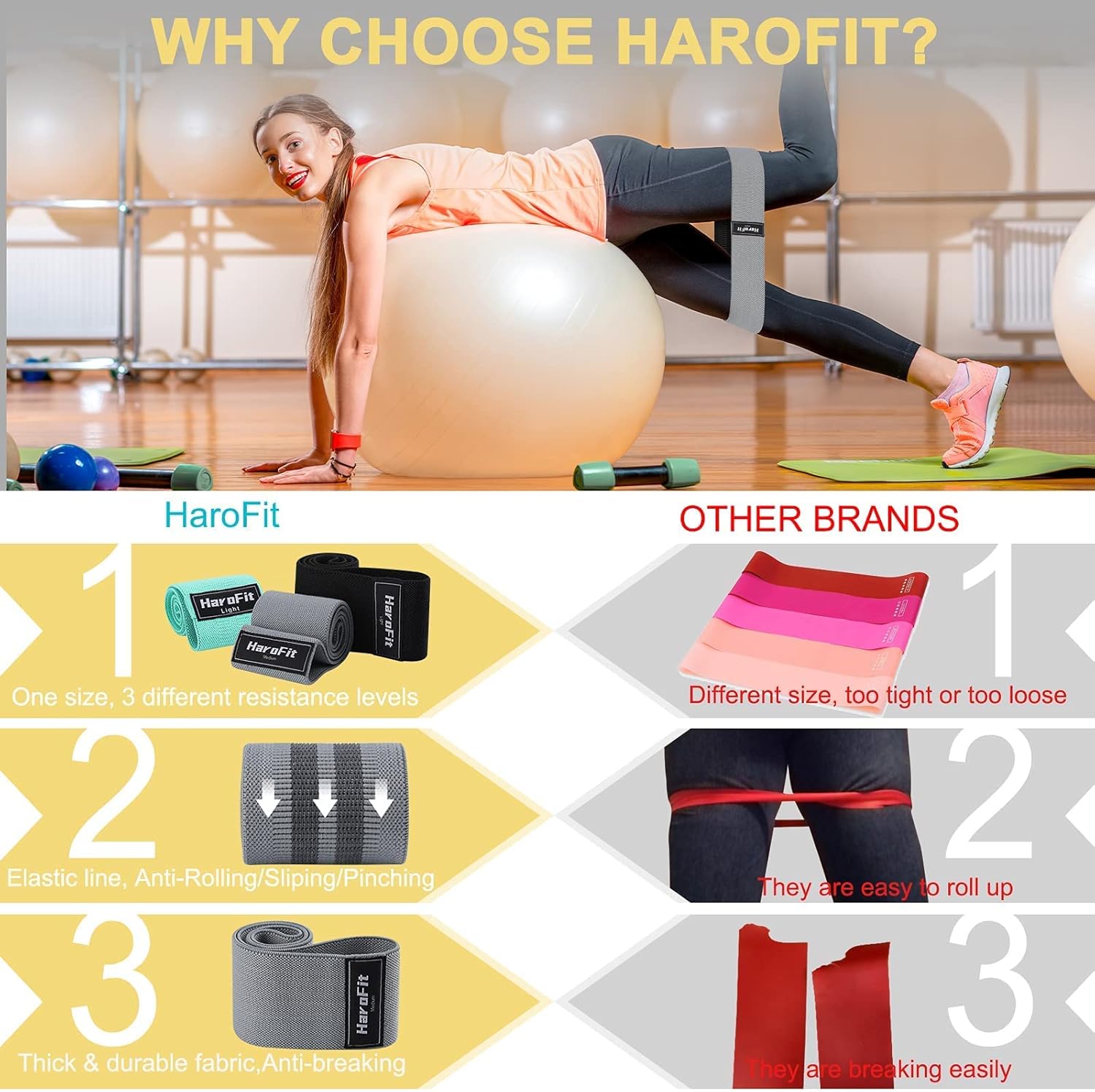 [Top Quality]: HAROFIT Booty Bands are sewn from high-quality durable fabric, these glute bands are durable, comfortable, environmentally friendly and skin-friendly, the high-quality material offers great elasticity and strong resistance. The work out bands for exercise will not break during exercise.