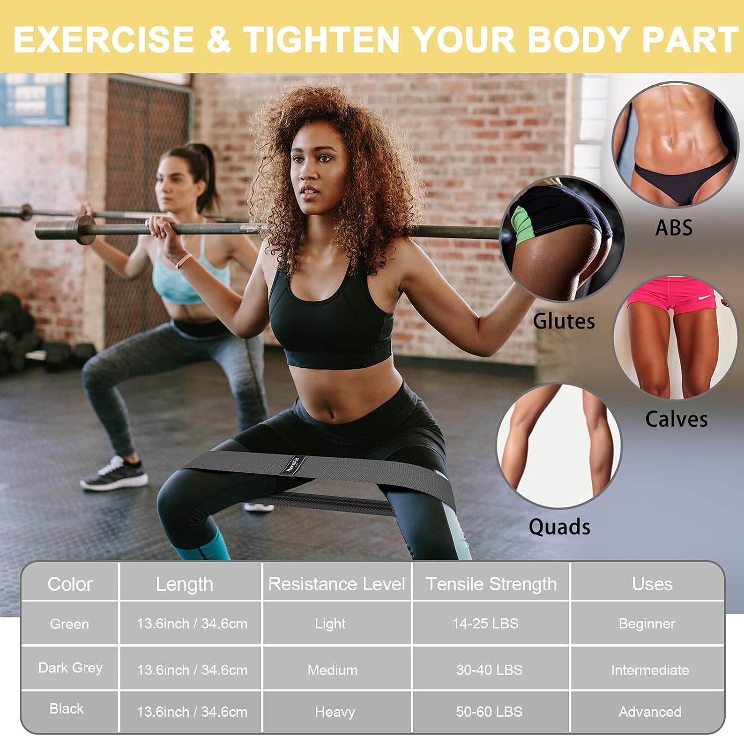[3 Different Resistance Levels]: The booty bands for women are set to light (green), medium (dark gray), and heavy (black) three resistance levels. Cloth resistance bands for legs are suitable for different level workouts, from beginners to fitness experts, making sure to meet all your workout goals and intensity levels.