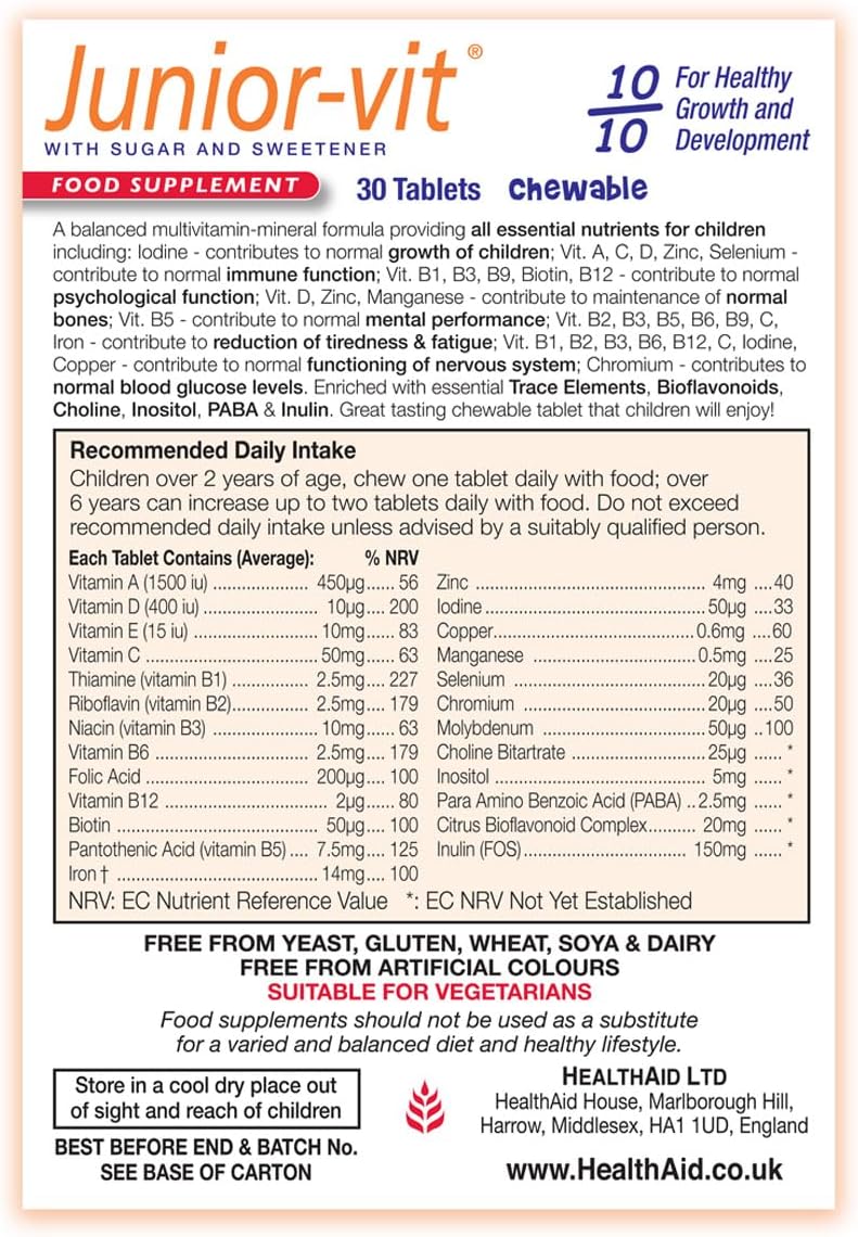 HealthAid Junior-VIT Chewable Multivitamins Pack of 8 x 30 Vegetarian Tablets (240 Tablets)