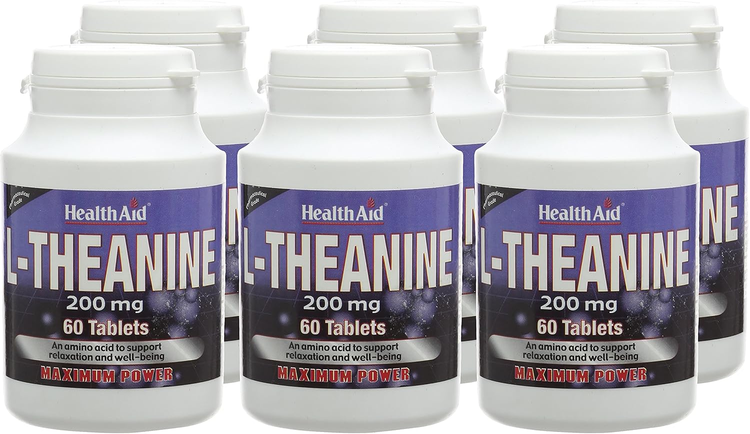 HealthAid L-Theanine 600mg Free Form Pack of 6 x 60 Vegan Tablets (360 Tablets)