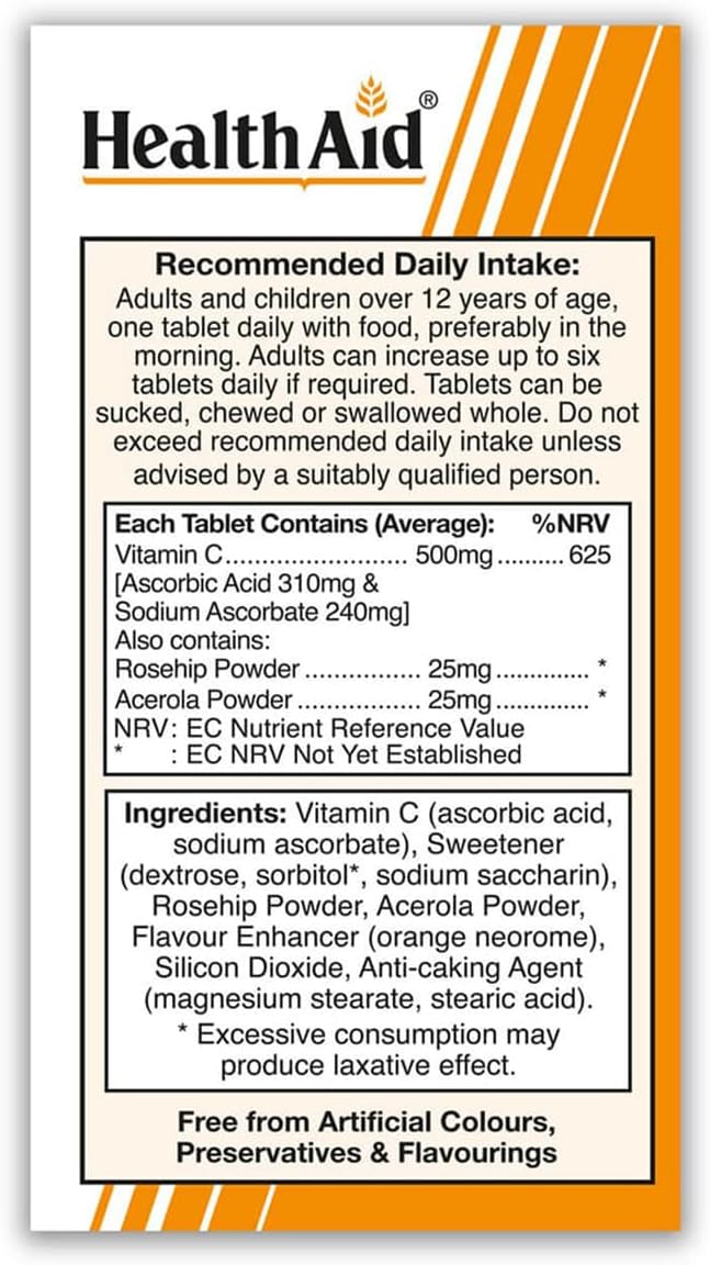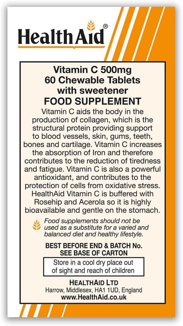 HealthAid Vitamin C 500mg – Chewable – 60 Vegetarian Tablets
