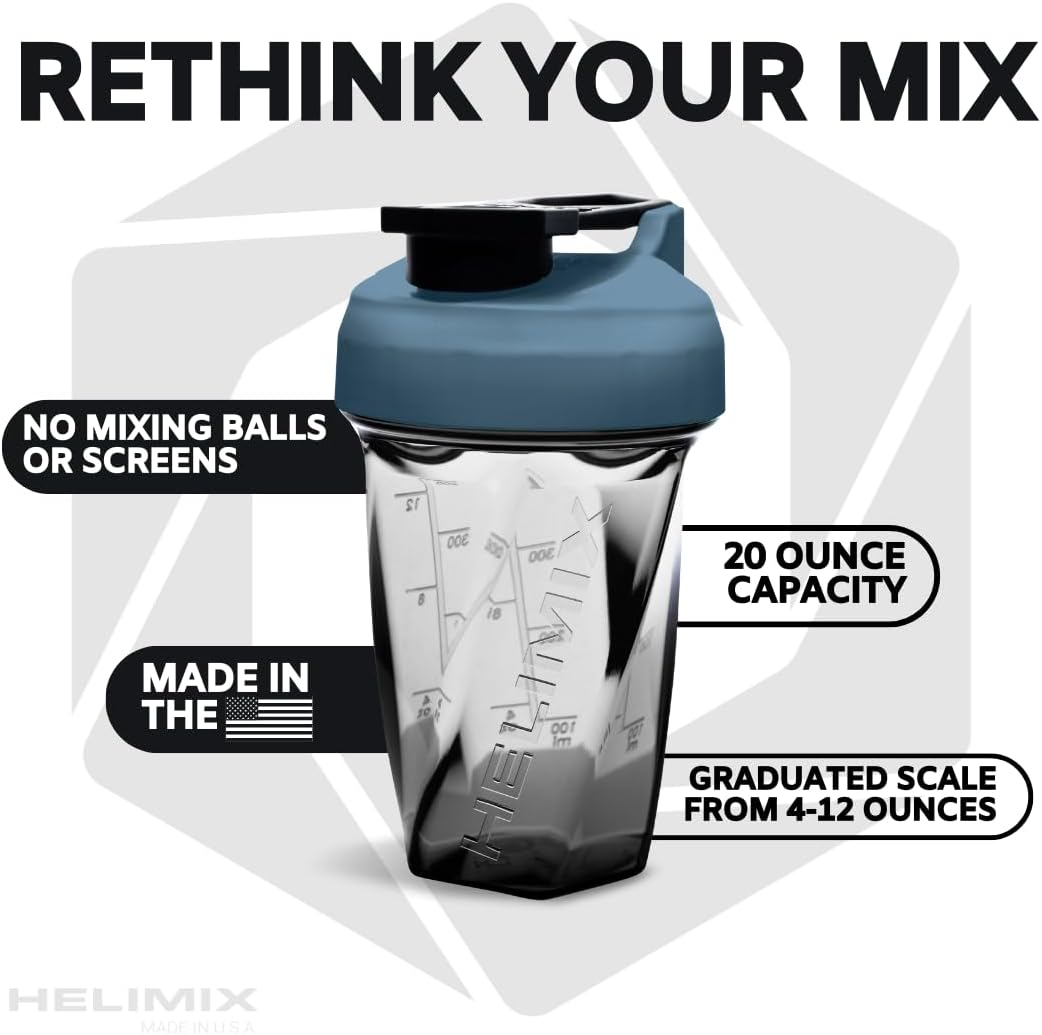 Helimix 1.5 Vortex Blender Shaker Bottle Holds Upto 20oz | No Blending Ball or Whisk | USA Made | Portable Pre Workout Whey Protein Drink Shaker Cup | Mixes Cocktails Smoothies Shakes | Top Rack Safe