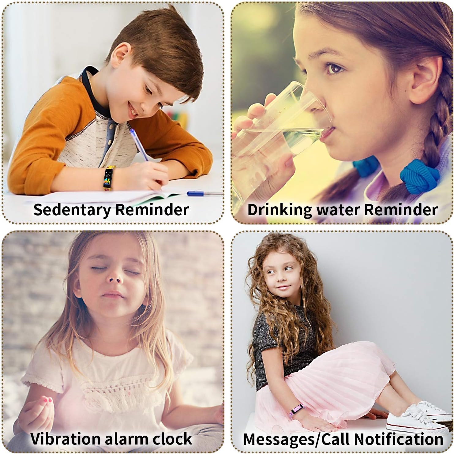 🎁FRIENDLY REMINDER: Our Fitness watches for kids will make life easier and smarter. The vibration alarm clock will wake up you without disturbing other people. When you connect this fitness tracker to your phone, you will never miss your calls/messages. You can set friendly reminders, such as walk after sitting for a long time, drinking water, and taking medicine, and with our fitness tracker, you will never forget the little but important daily things!