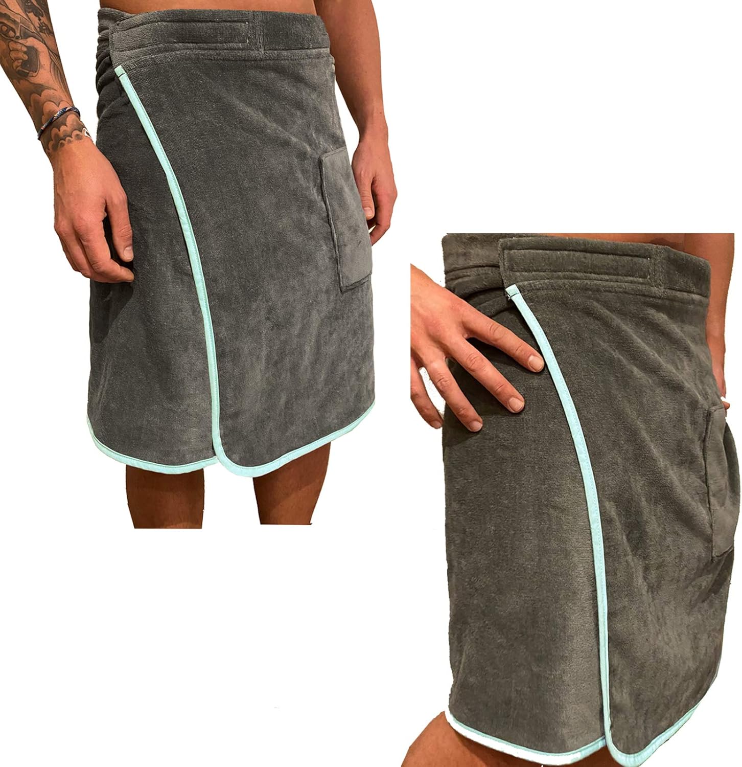 HOMELEVEL Men’s Sauna Kilt – Bath Towel for Spa – Cotton Gym Towels for Men – with Hook-and-Loop Fastening & Pocket