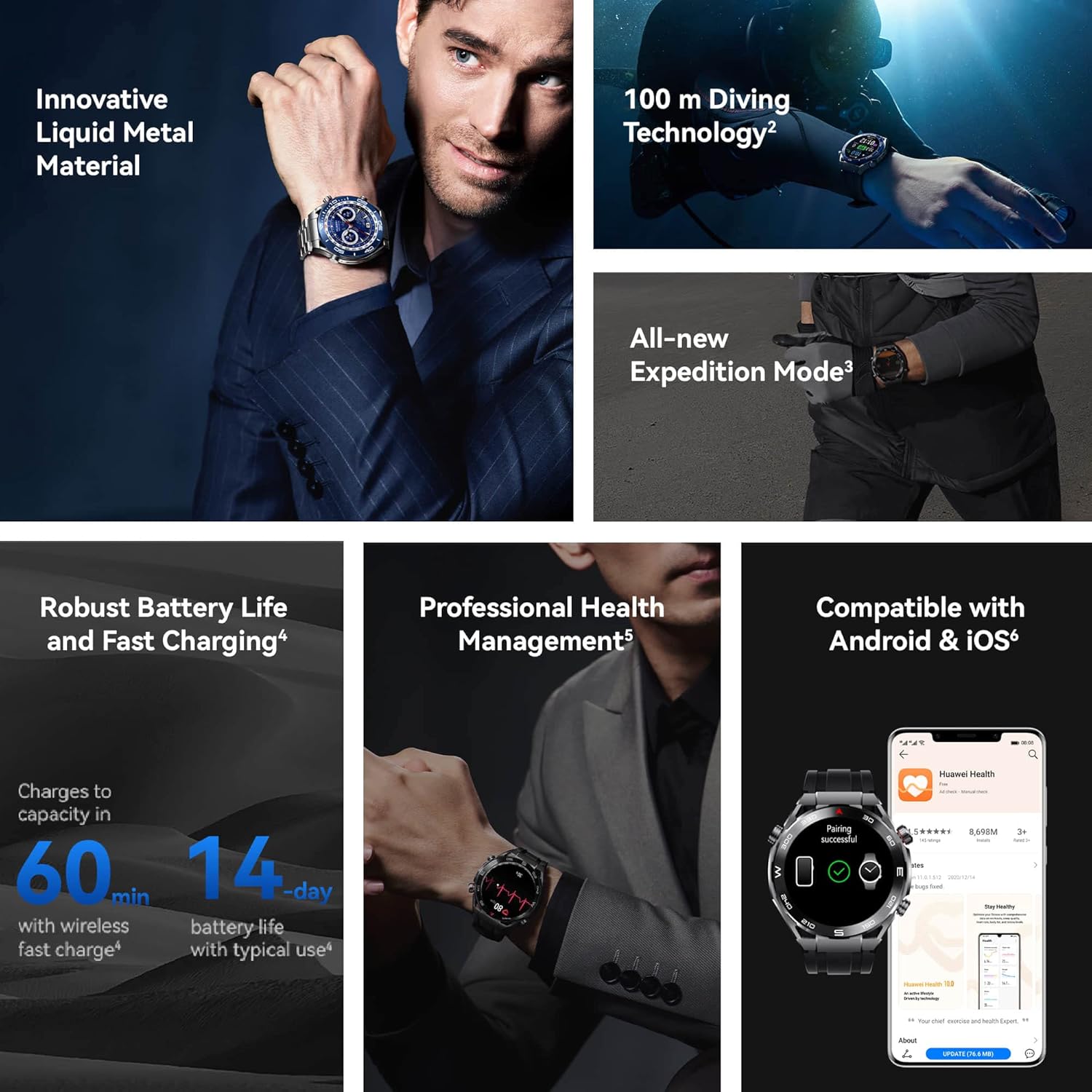 HUAWEI WATCH Ultimate Smart Watch – Zirconium Based Case & Sapphire Dial – Precision GPS & Advanced Diving Features – Long Life Battery Fitness Watch Android & iOS Compatible – 46MM Black
