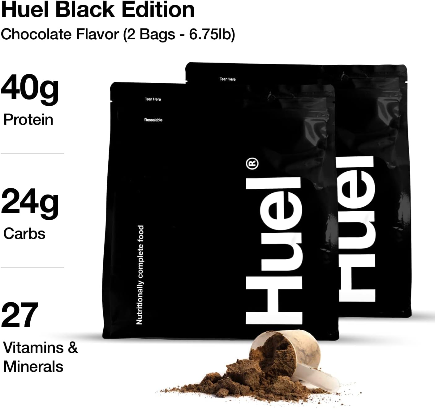 Huel Black Edition – Nutritionally Complete 100% Vegan Gluten-Free – Less Carbs More Protein – Powdered Meal (Chocolate, 2 Bags)